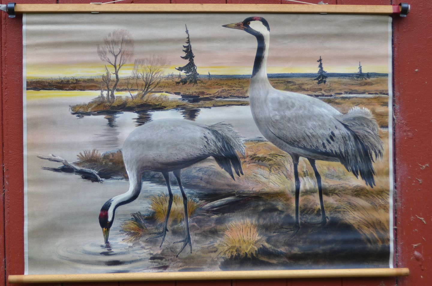 Anskuelsestavle med træstokke: Traner, Billedmål: 65 x 92 cm, (anskuelsestavle nr 6)