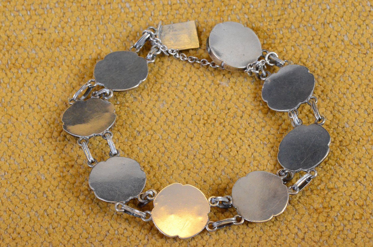 Armbånd skønvirke i sølv med lukket bagside. Blomster af sølv med center i grøn agat. Str.: 21 cm. Art No. 41
