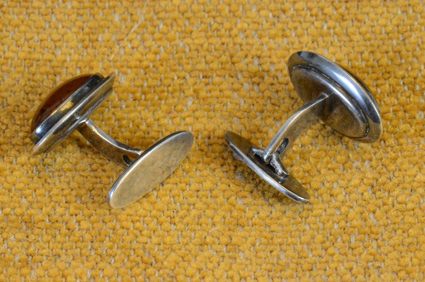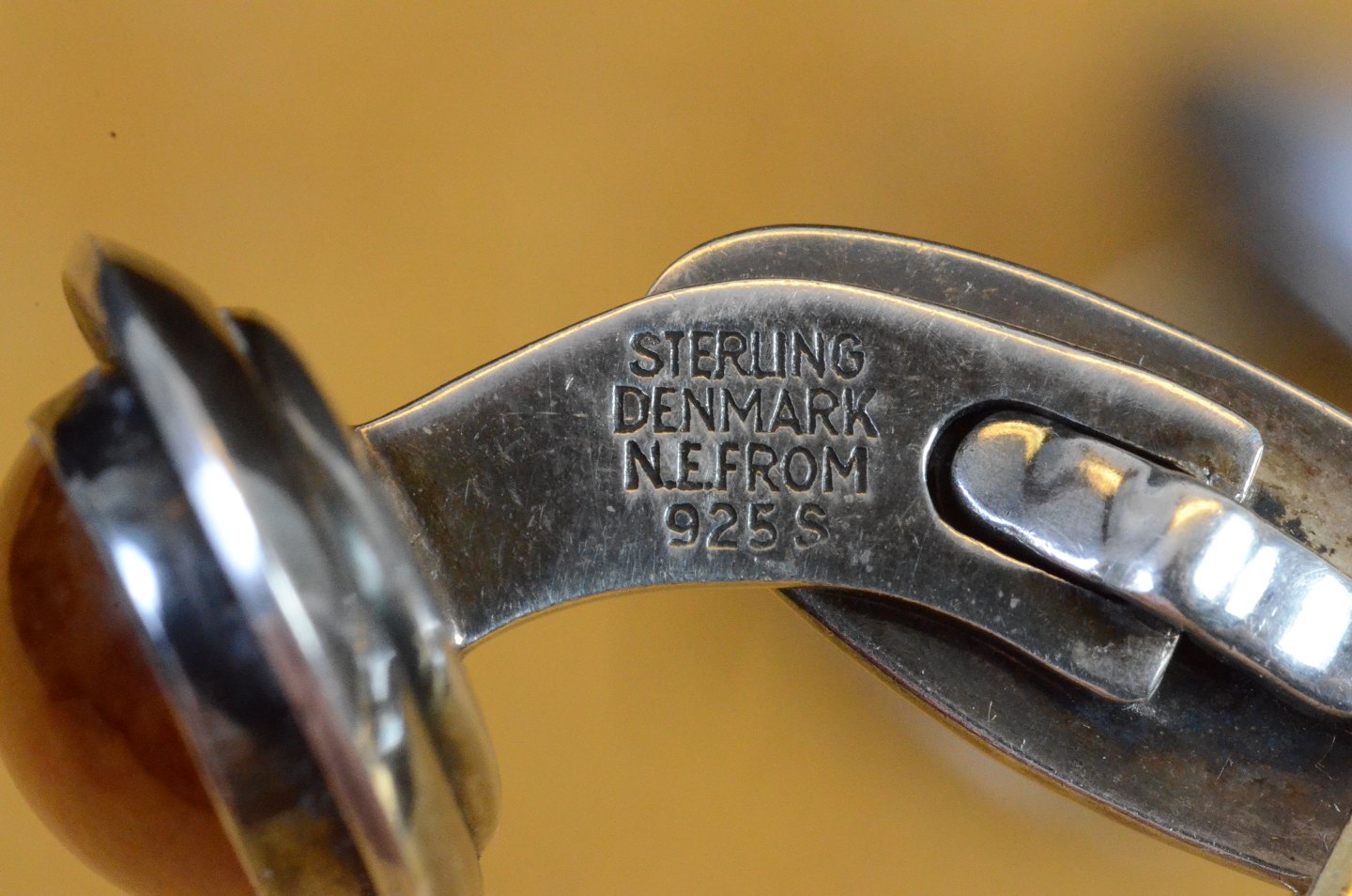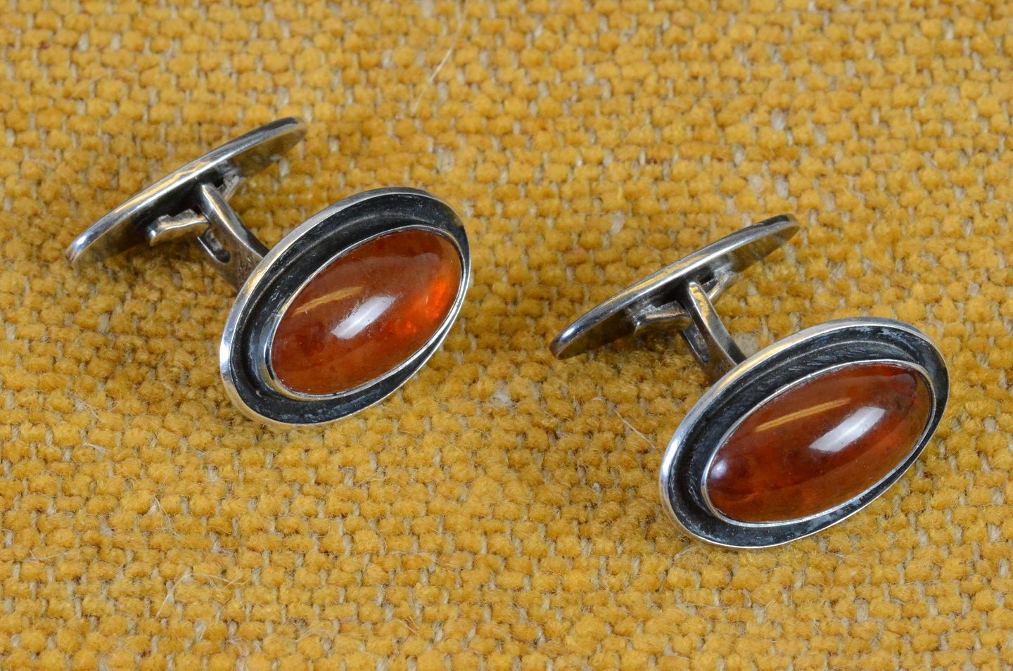 Manchetknapper med rav. Stemplet Sterling 925S N.E.From Denmark. Str.: 2,2*1,5 cm. Art. No. 97