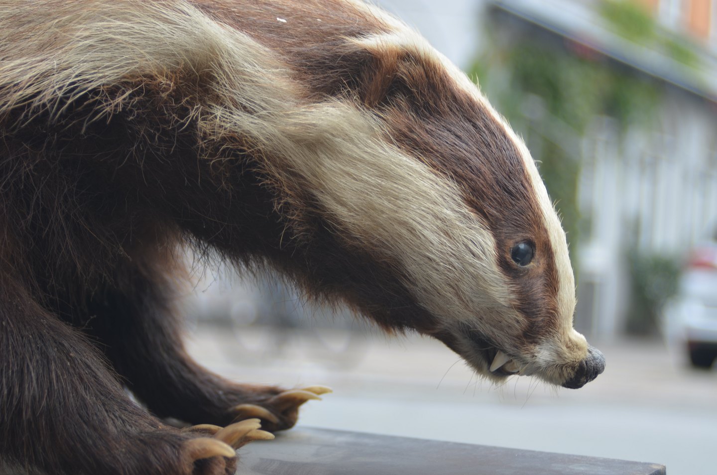 Udstoppet grævling, l: 80 cm, b: 26 cm