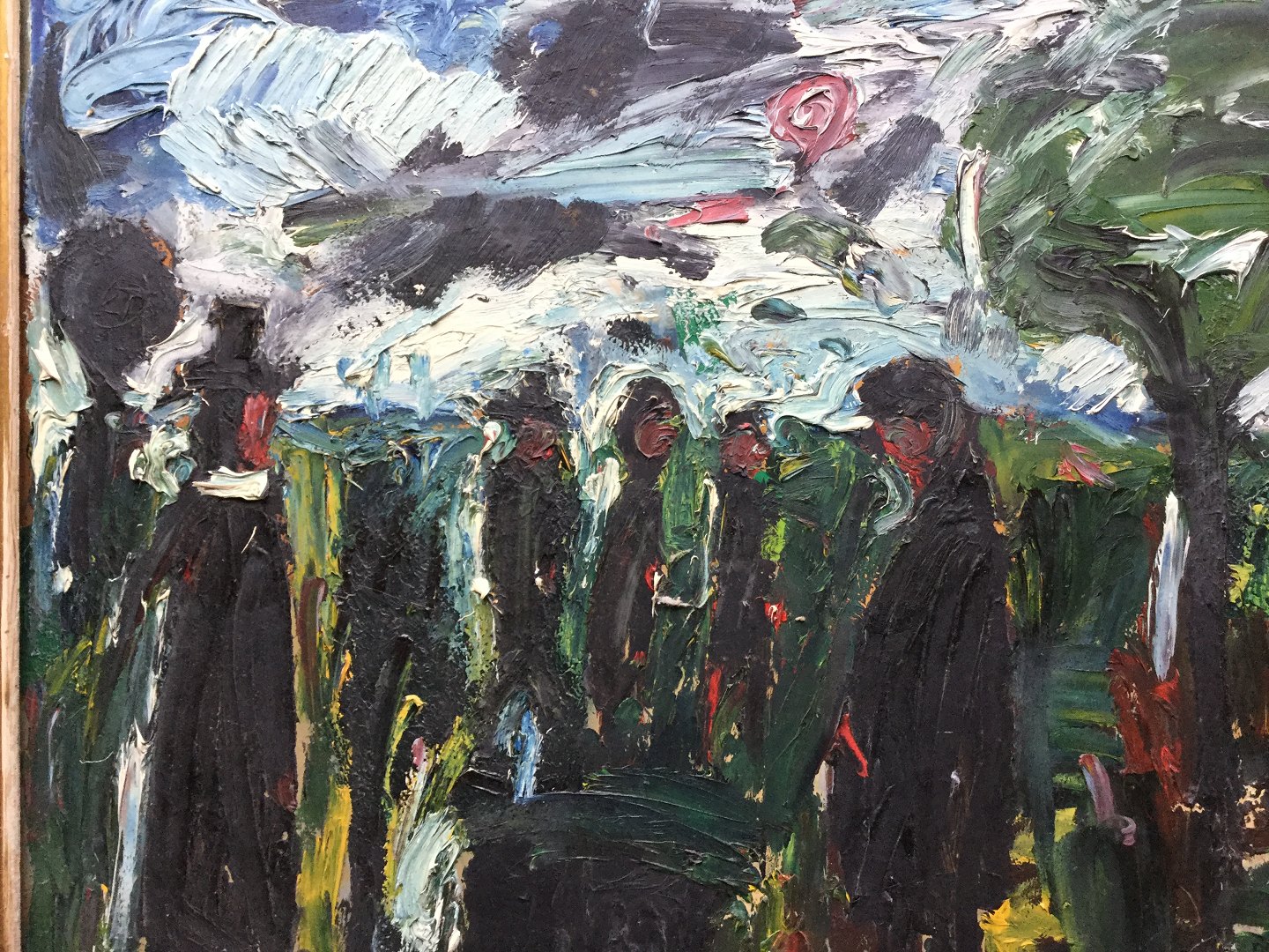 Maleri af Peder Brøndum Sørensen - Begravelsesfølget med præsten 1955.
