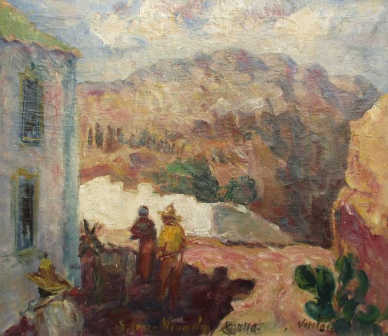 Vantore, Mogens (1895 - 1977) Denmark: A view from the Sierra Nevada, Spain. Oil on canvas. Signed .: Vantore. Sierra Nevada, Spain. 62 x 70 cm.
