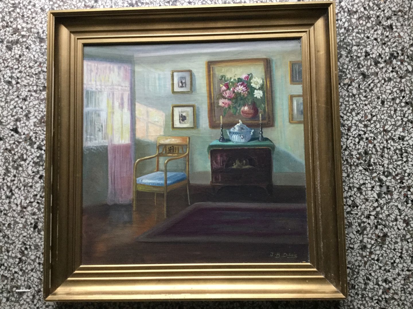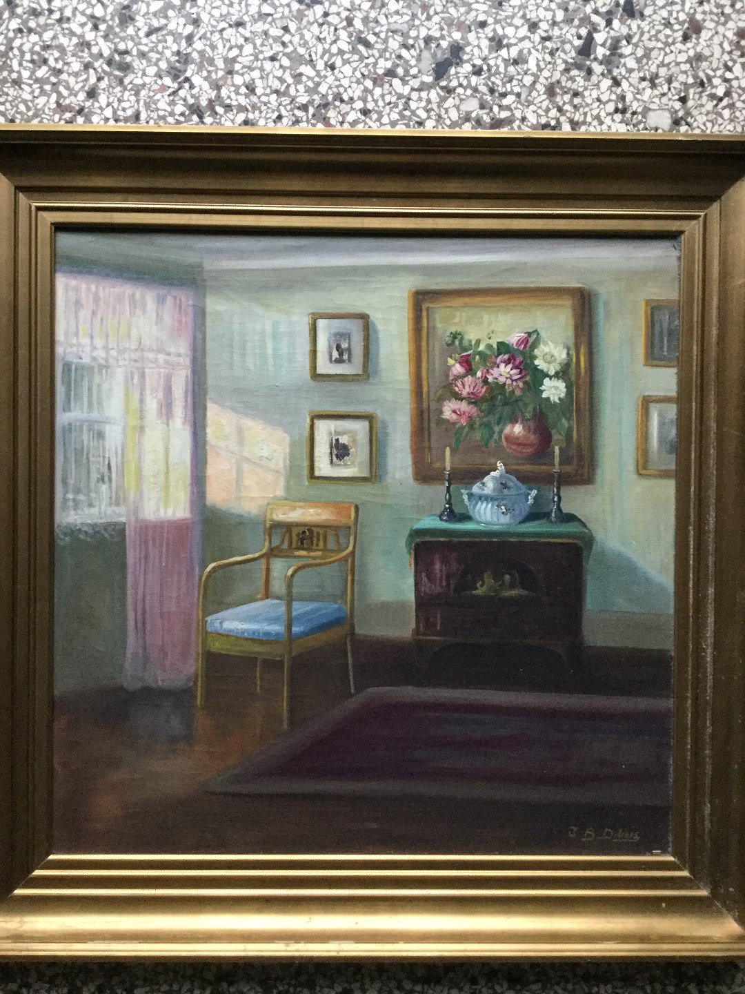 Maleri af Ingeborg Debois - Interiør fra stue.