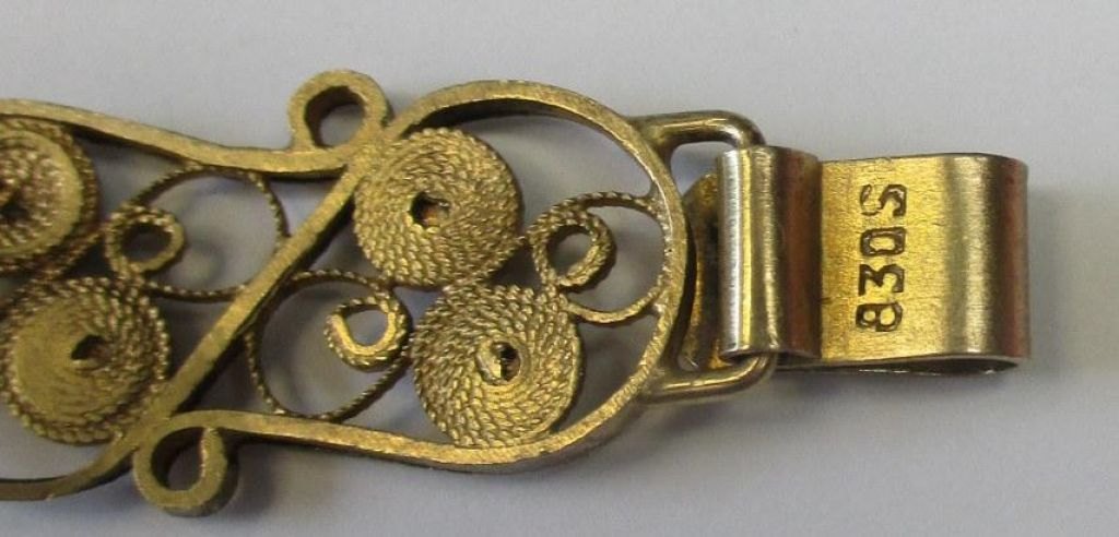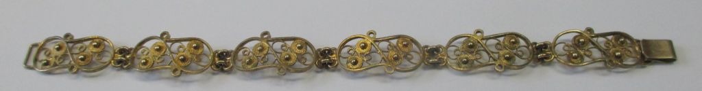 Forgyldt filigran arm smykke, 20. årh. 830 s. Længde: 19 cm. Vægt.: 11,6 cm.