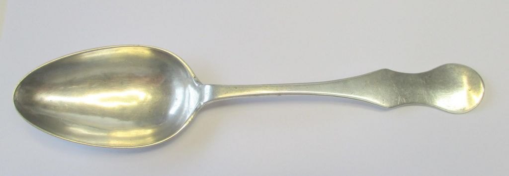 Sølvske, mester Claus Hestorff (ca. 1774 - 1833?) Tønder, Danmark. Violin mønster. Med rococo graveringer på laf. Stemplet: Cl H. Med indgravering: RJJSB - MJRS 1800. Senere indgravering: RIR. Længde: 19,3 cm. Vægt.: 39 gram.