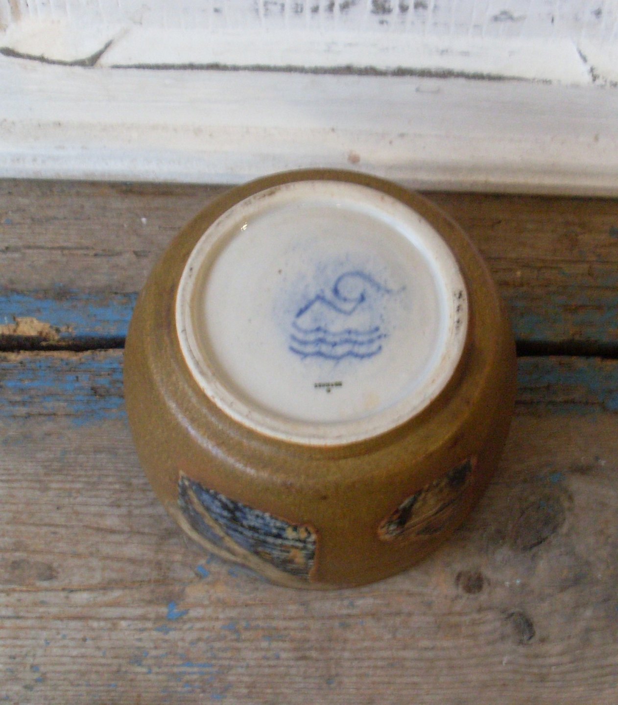 Niels Thorsson for Royal Copenhagen unika stentøjs skål dekoreret i brune nuancer.