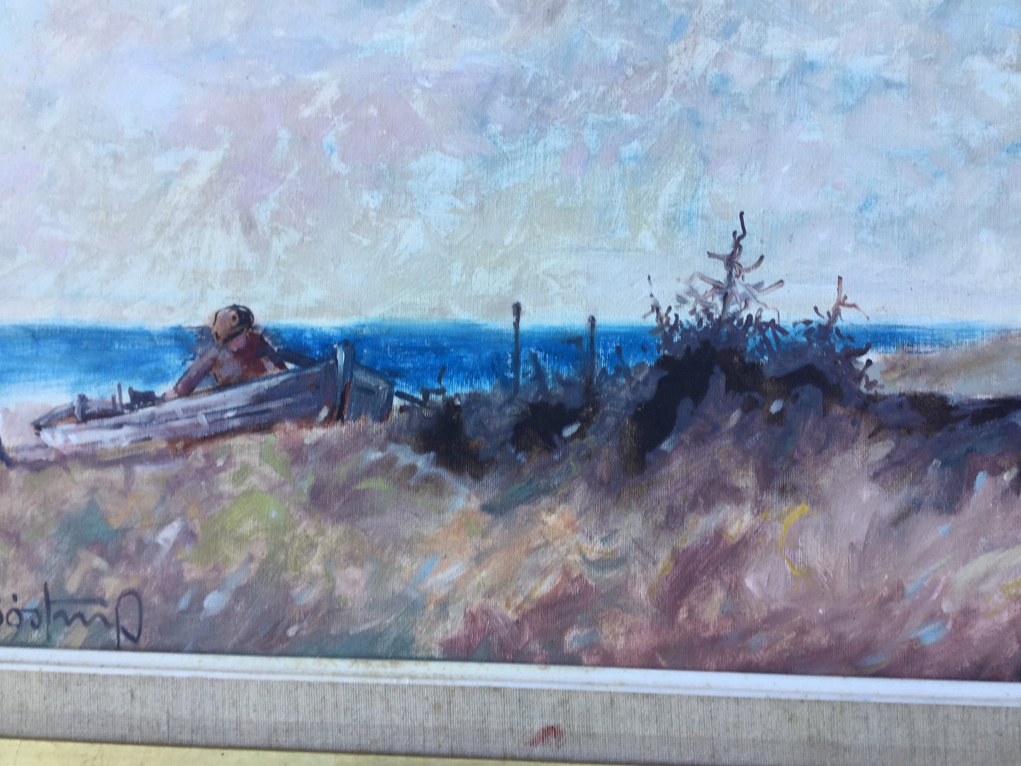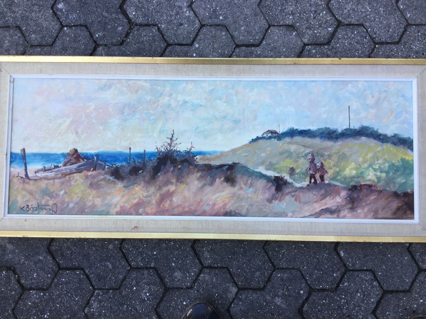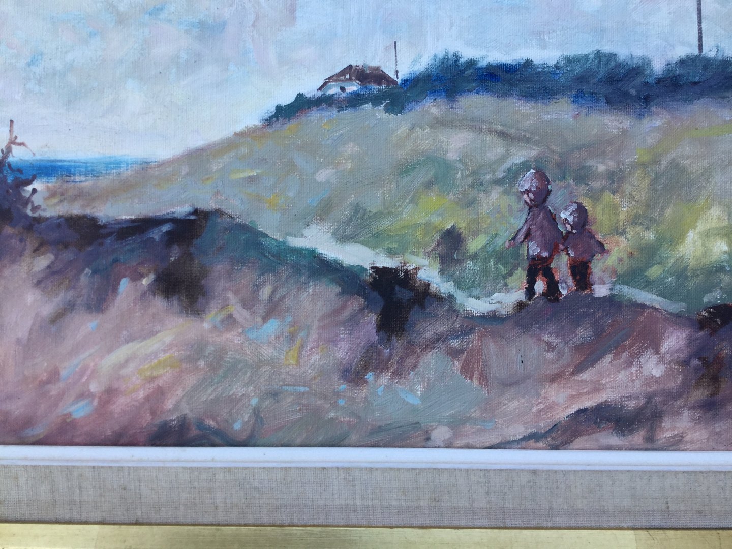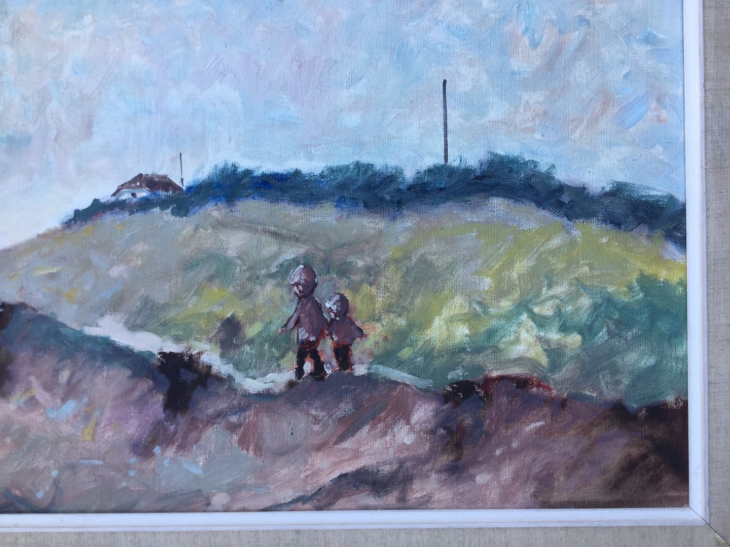 Maleri - Knud Bøstrup - Klitparti med gående børn.