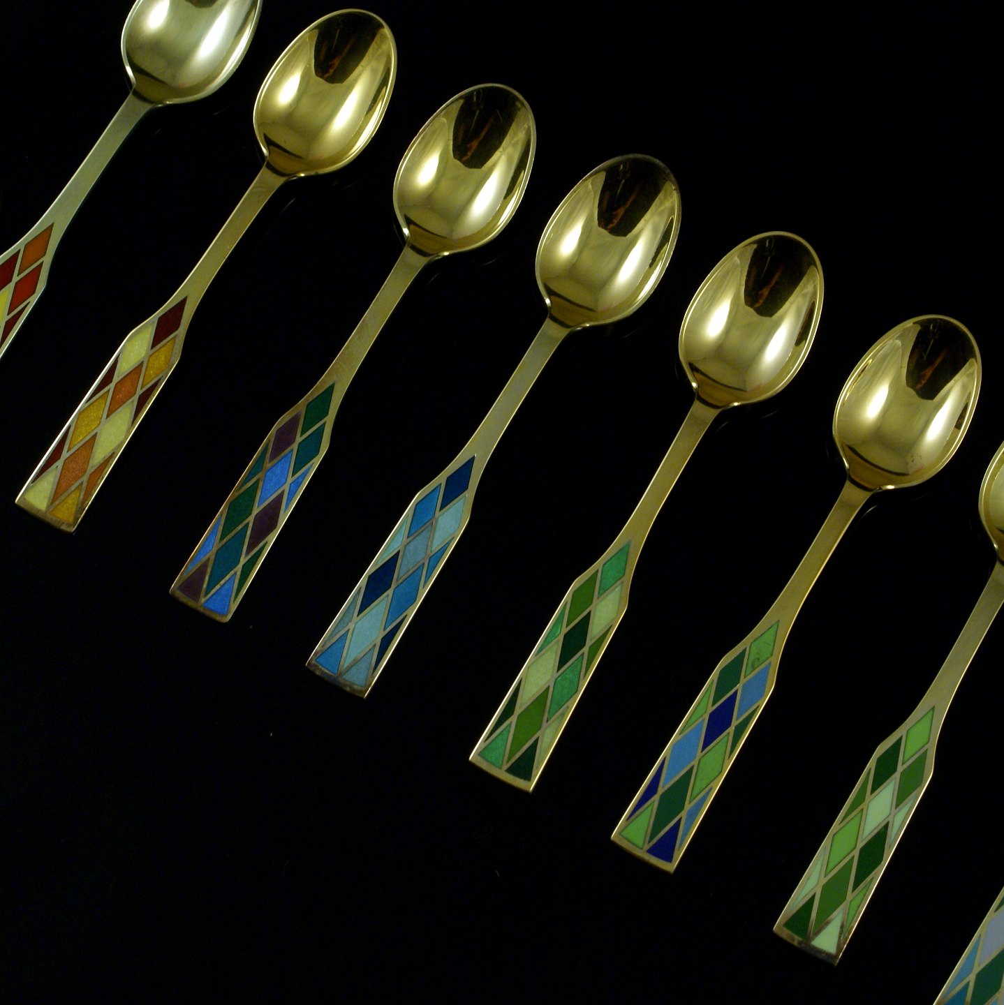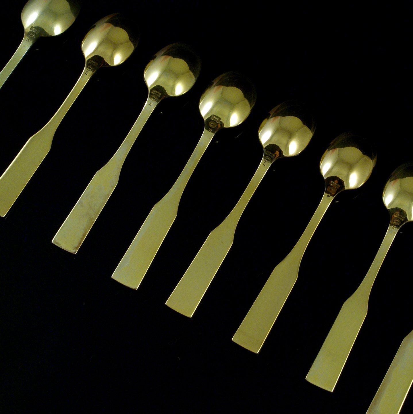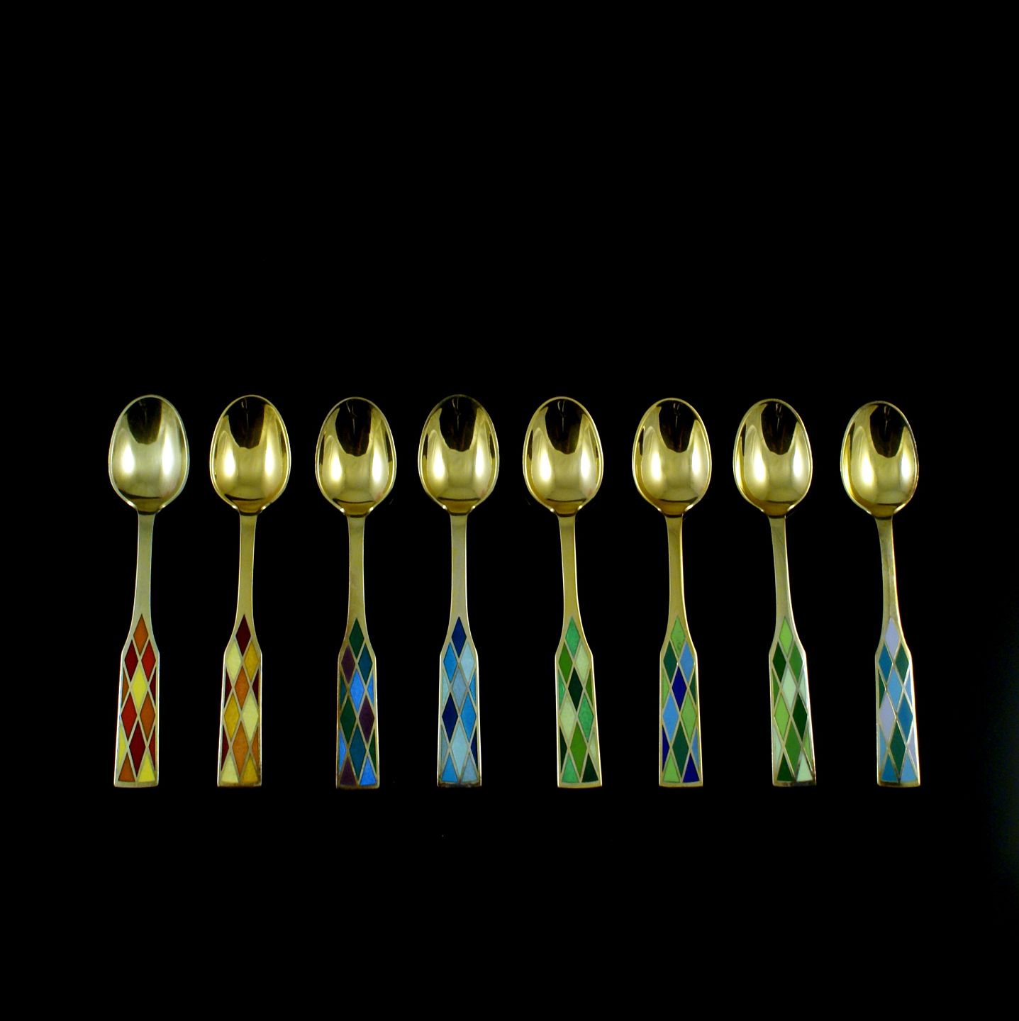 Georg Jensen. Sæt på otte 'Harlequin' kaffeskeer i forgyldt sterlingsølv - Eva Stæhr-Nielsen