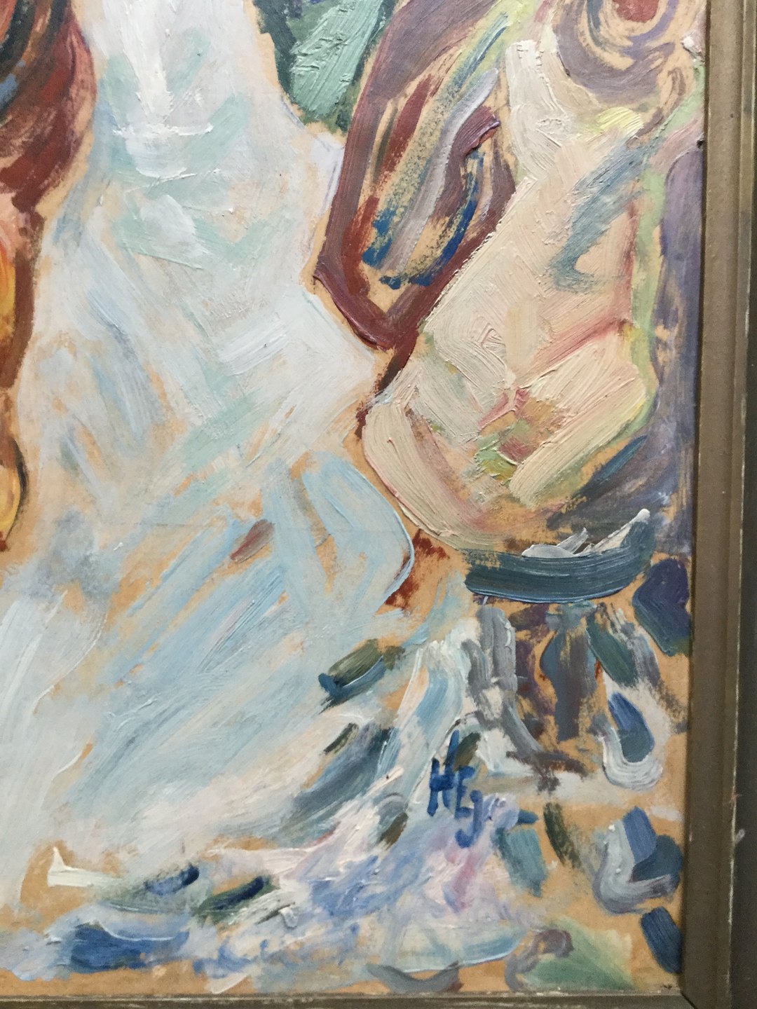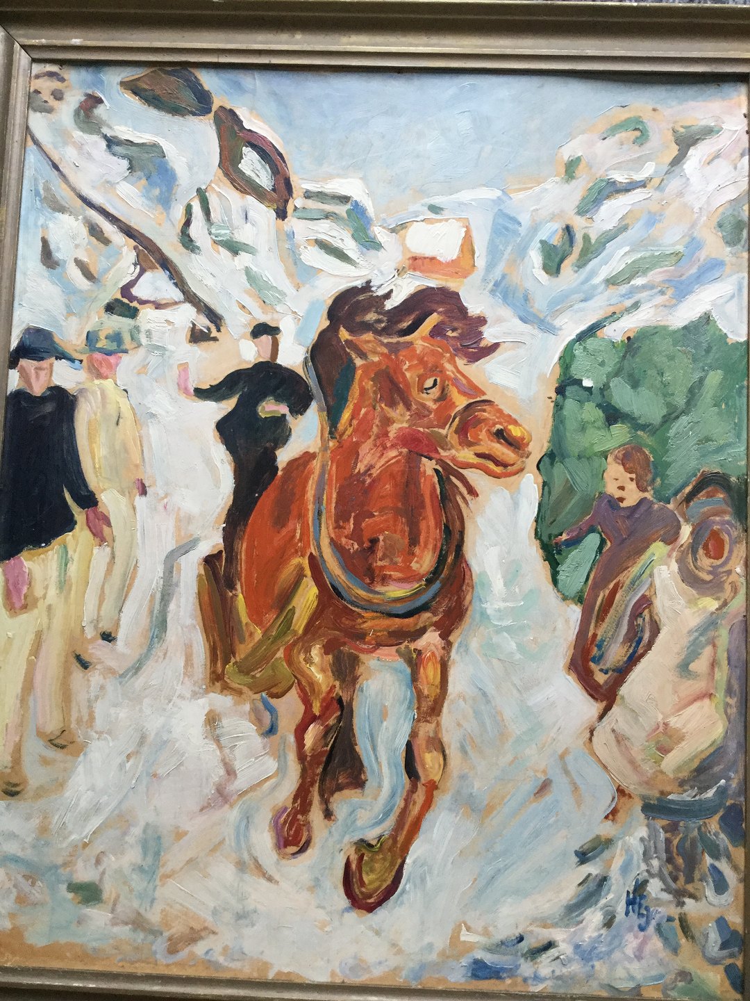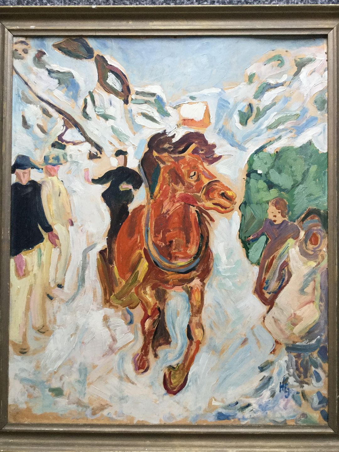 Text zugänglich auf Dänische: Maleri af Herman Emil Jensen - Hest og personer i landskab.