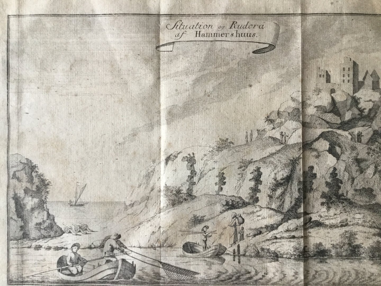 Gammelt kobberstik af Erik Pontoppidan - Hammershus - fra Danske Atlas 1767.