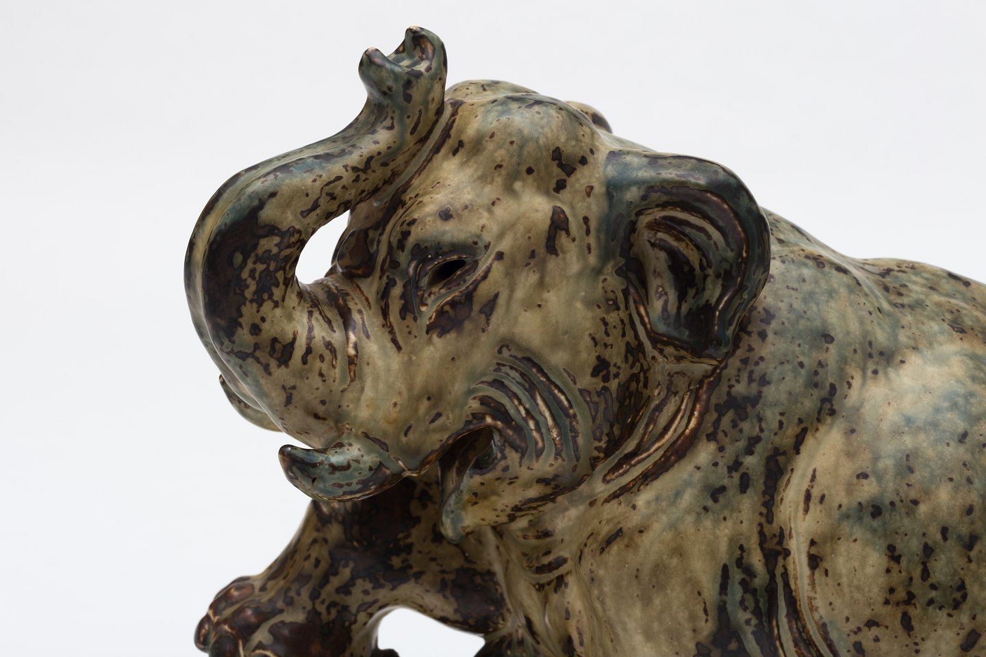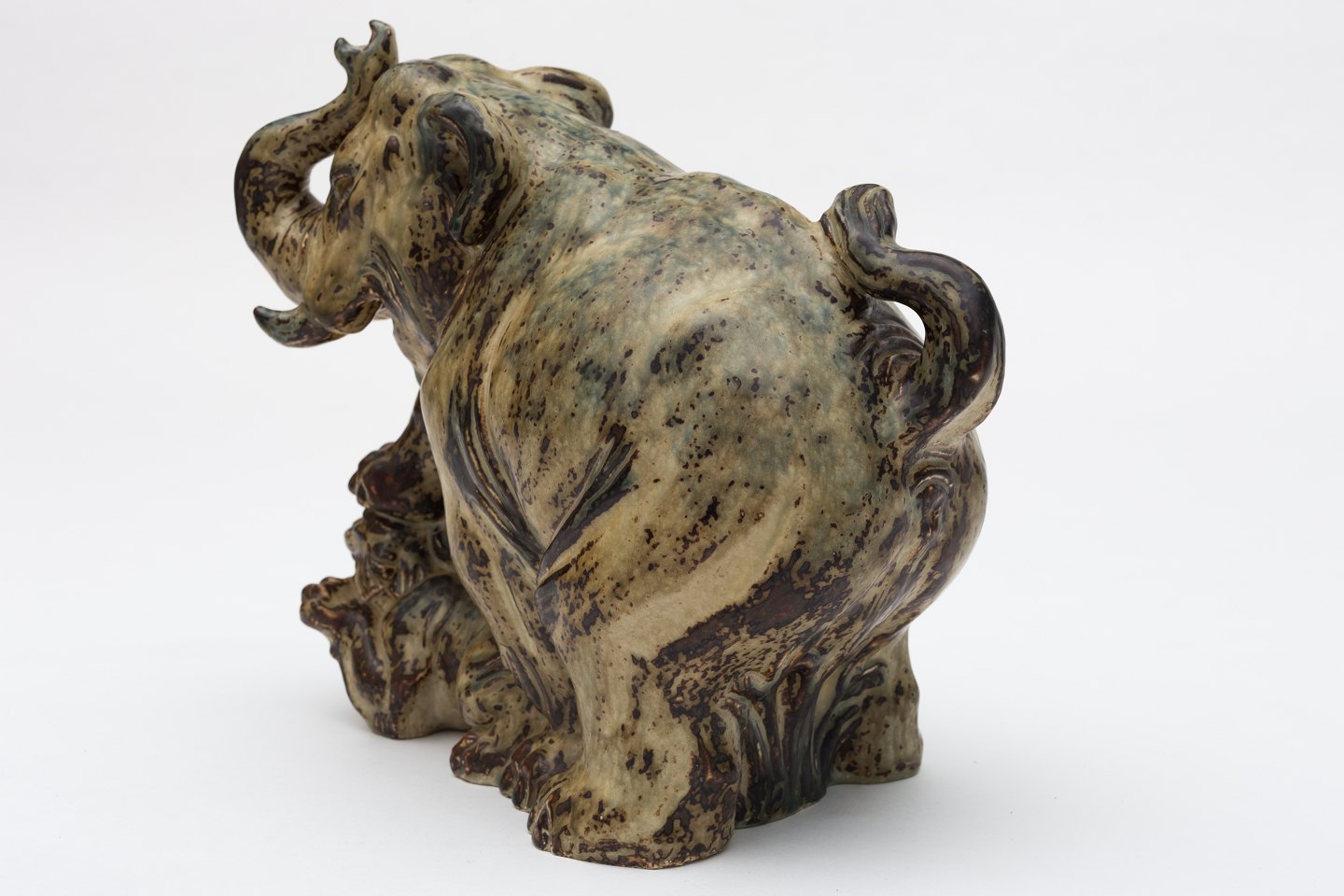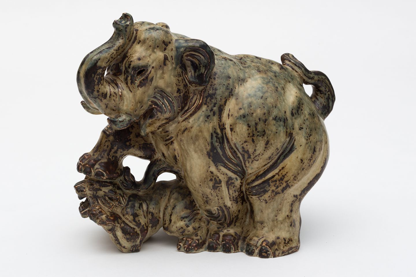 Elefant og tiger i stentøj m. Sungglasur. Nr. 20165