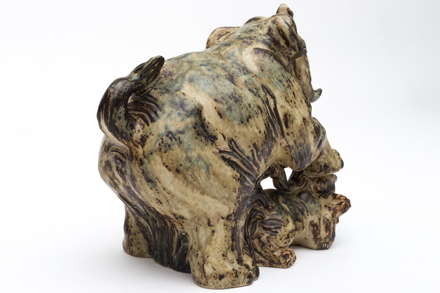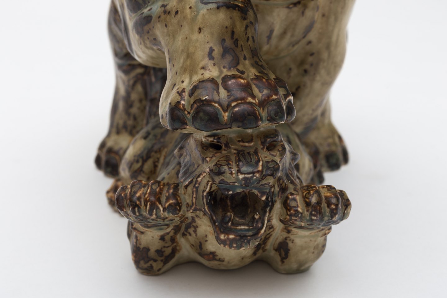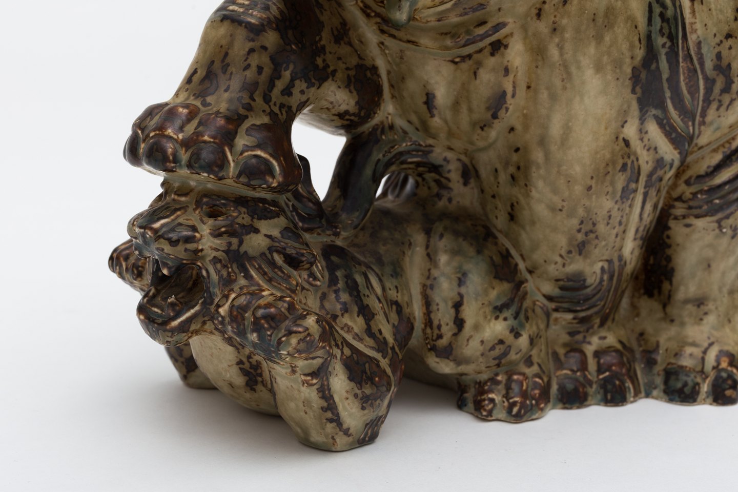 Elefant og tiger i stentøj m. Sungglasur. Nr. 20165