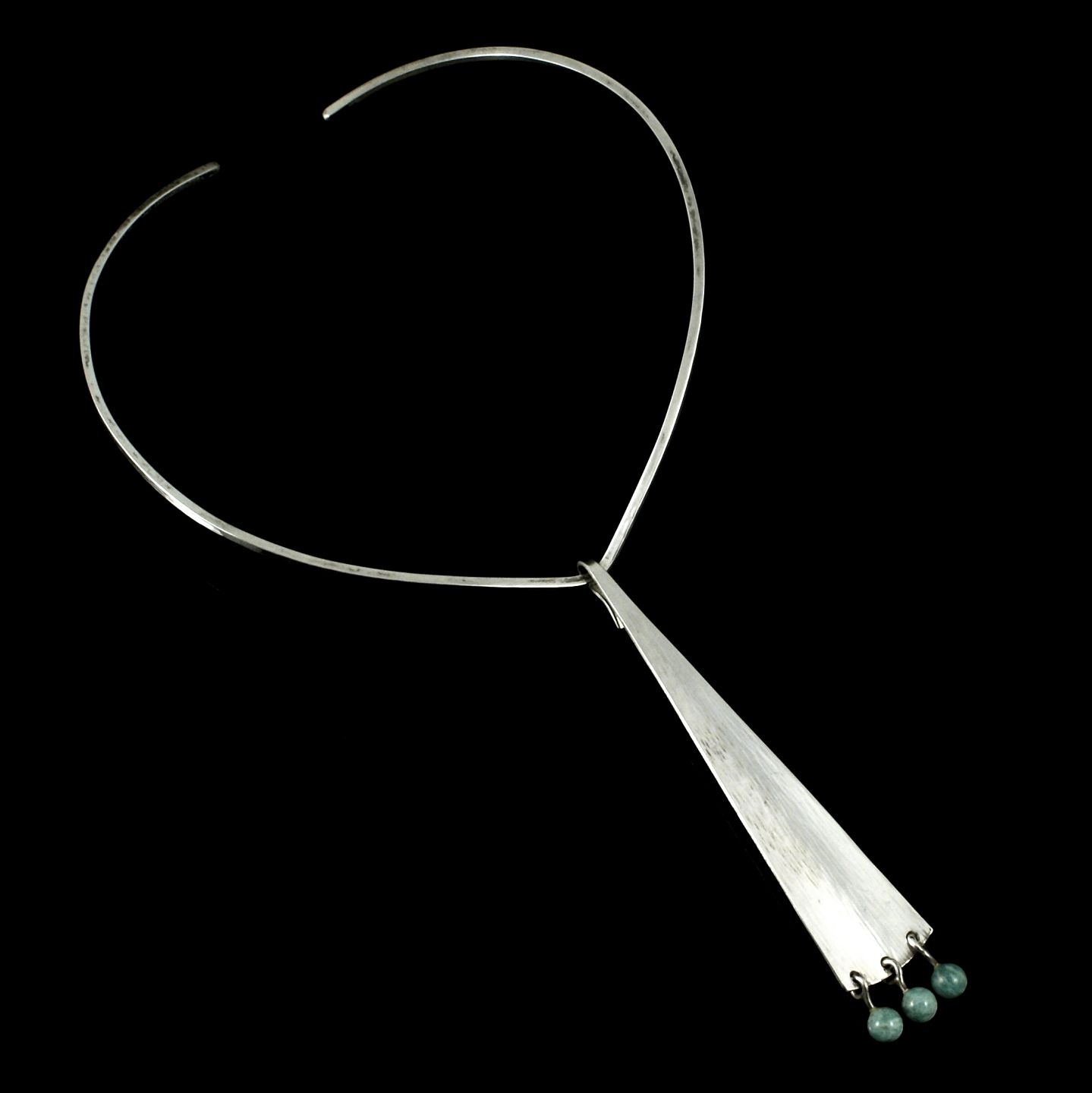 Hans Hansen. Moderne Halsring i Sterling sølv med Amazonite. 1960erne