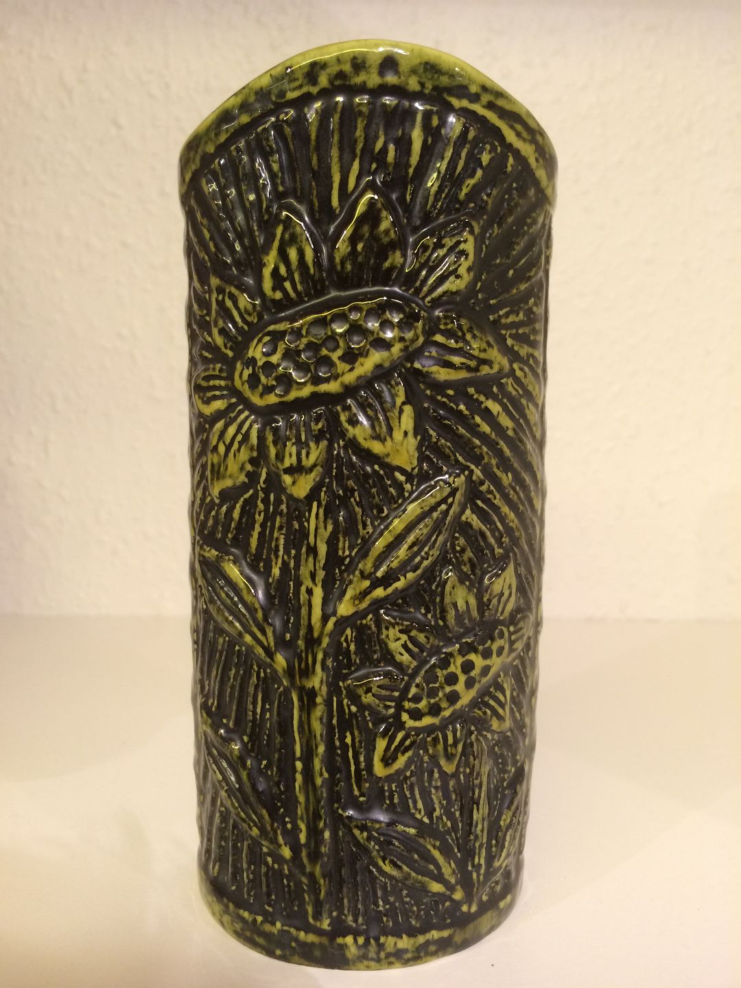 Vase med relief dekoration af Gunnar Nylund 17 cm. GN arbejde for Rørstrand og Saxbo. Kommer du til Vejen kan du se meget keramik på Vejen Kunstmuseum.