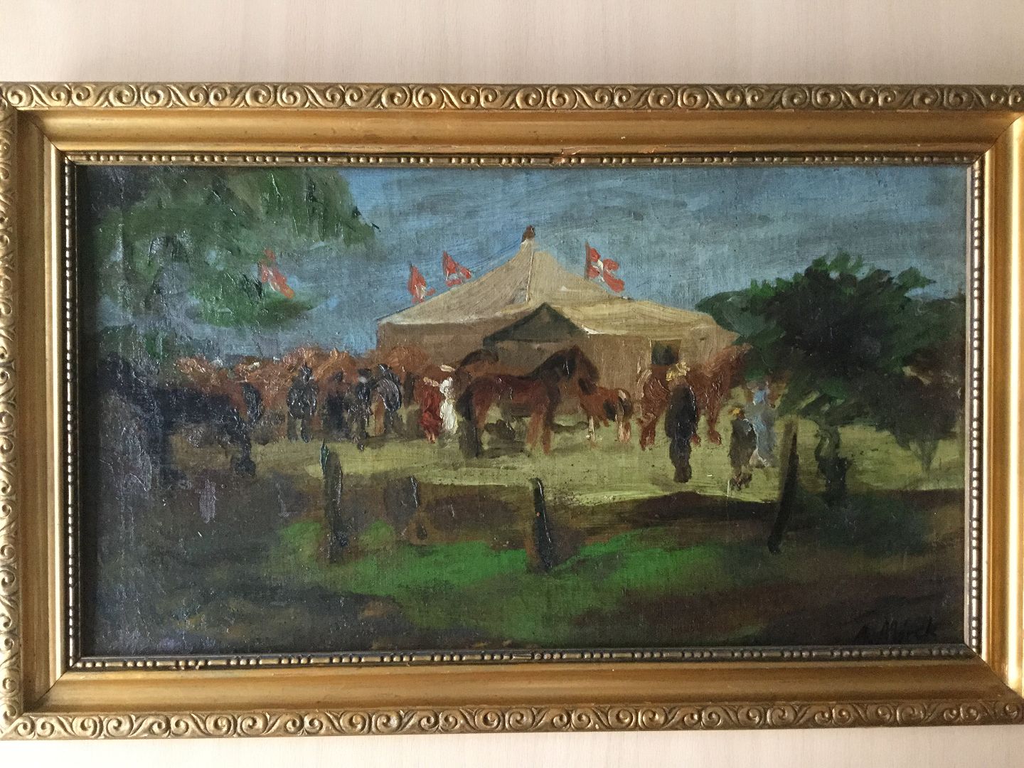 Aksel Mørch - Dyrskue med heste og folkeliv.