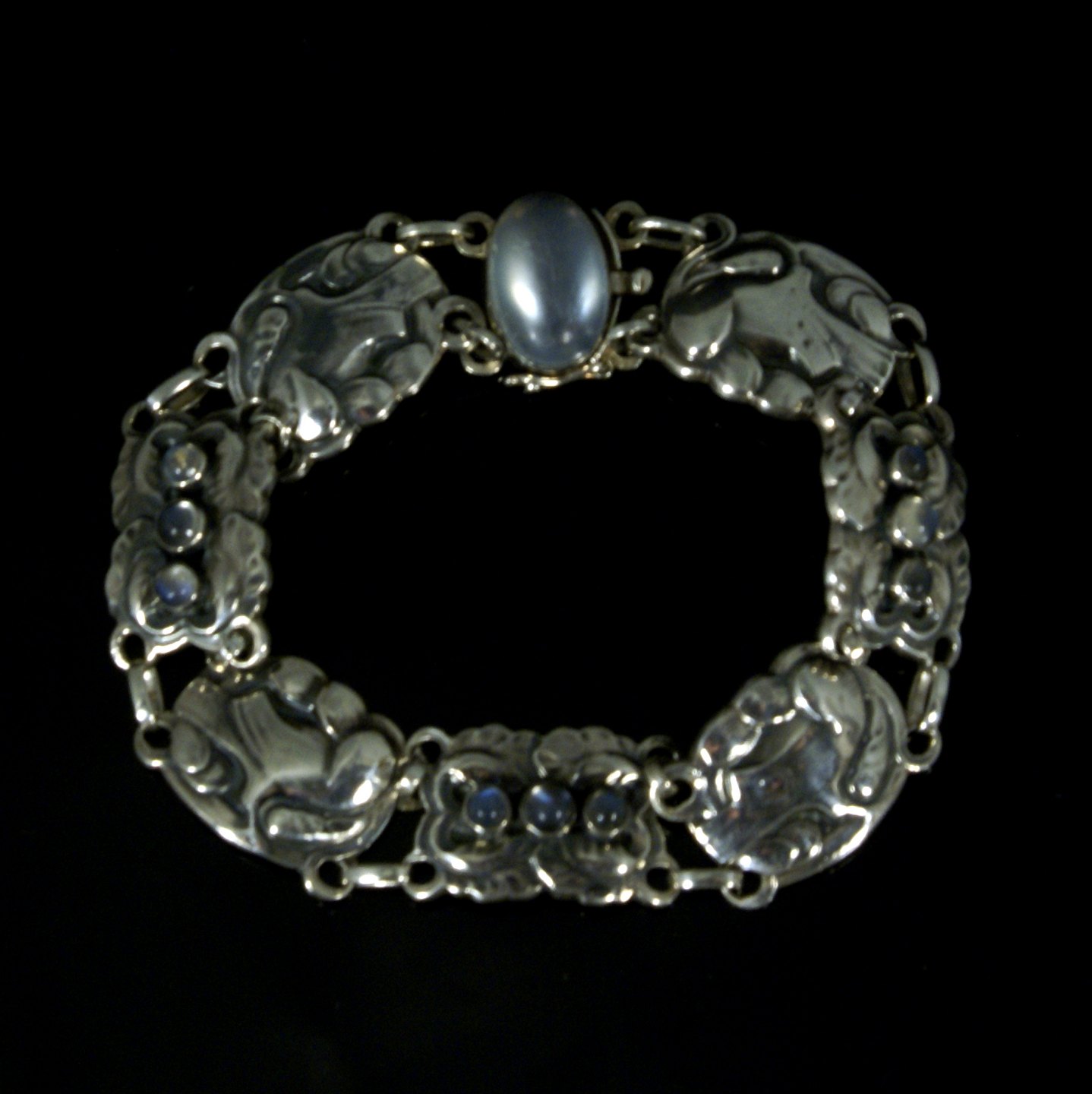 Georg Jensen Armbånd i Sterling Sølv med månesten #24. 1933-44 stempler.