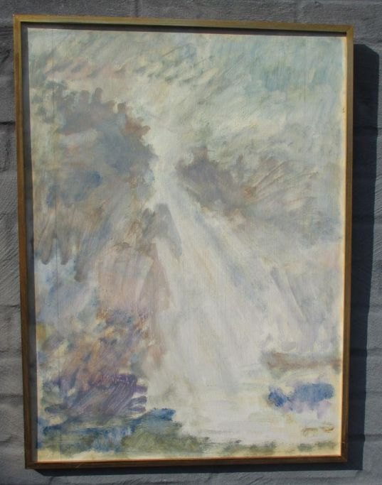 Hegndal, Valdemar Foersom (1916 - 2002) Danmark: Komposition. Skitse. Olie på træ. 63 x 48 cm. Verso betegnet.