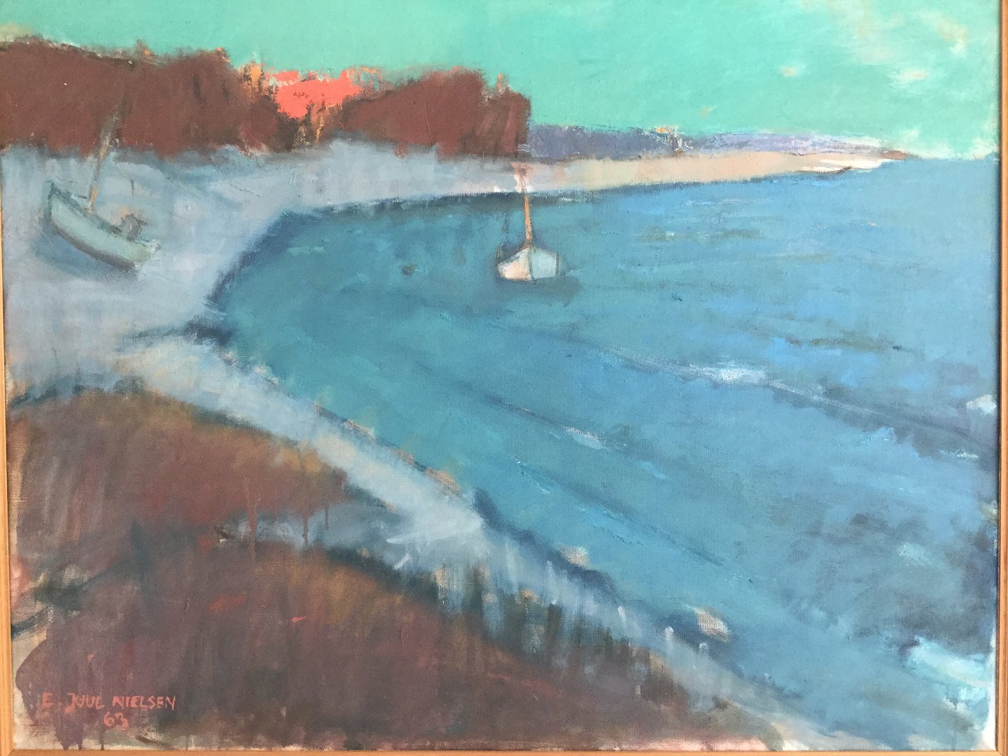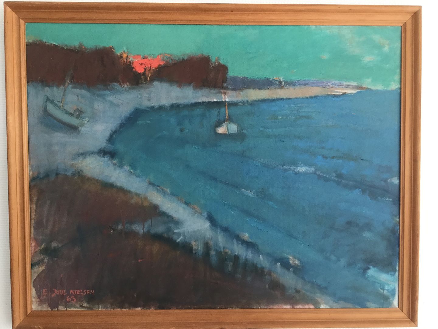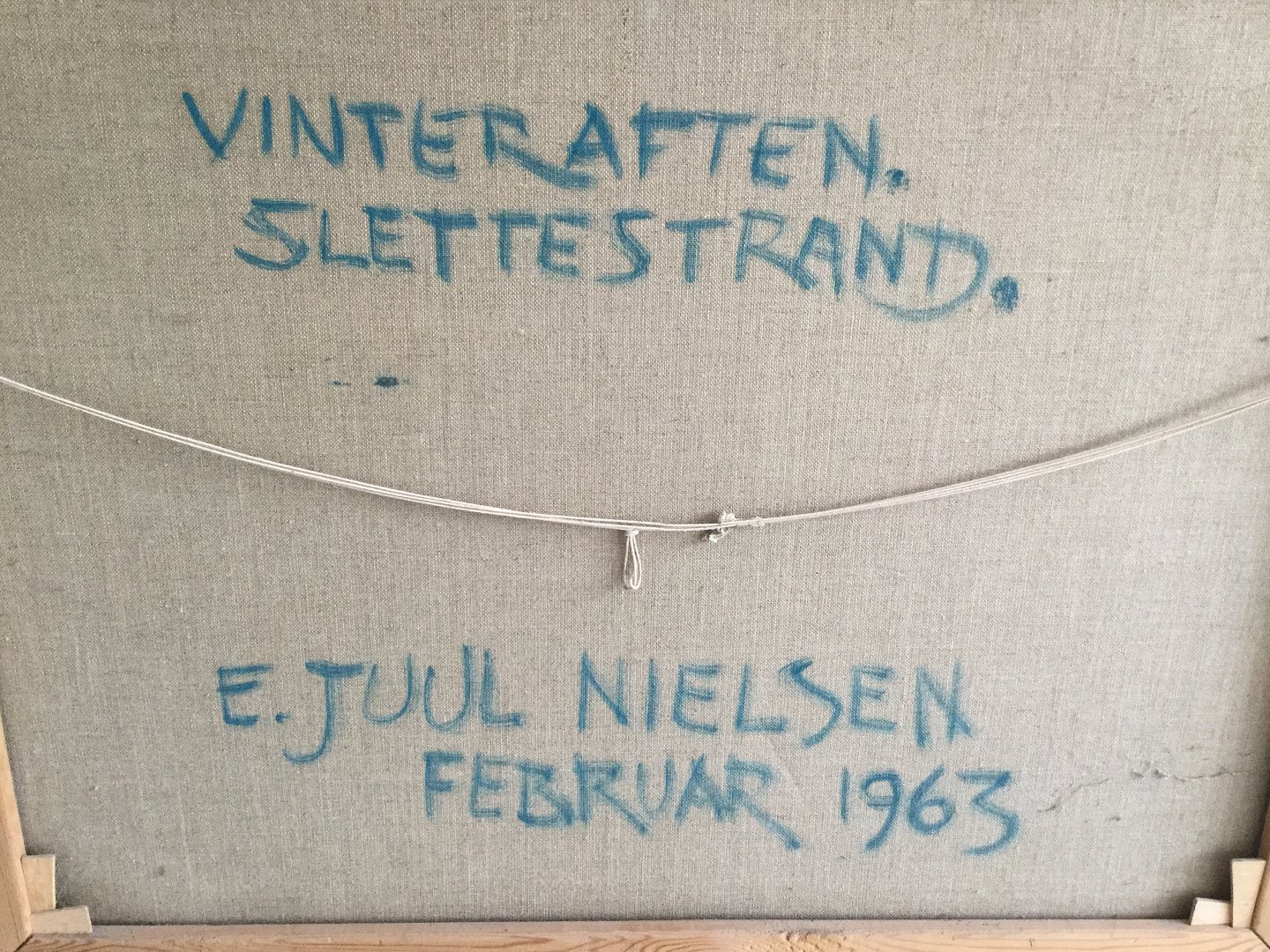Maleri af E. Juul Nielsen - Vinteraften Slettestrand 1963.