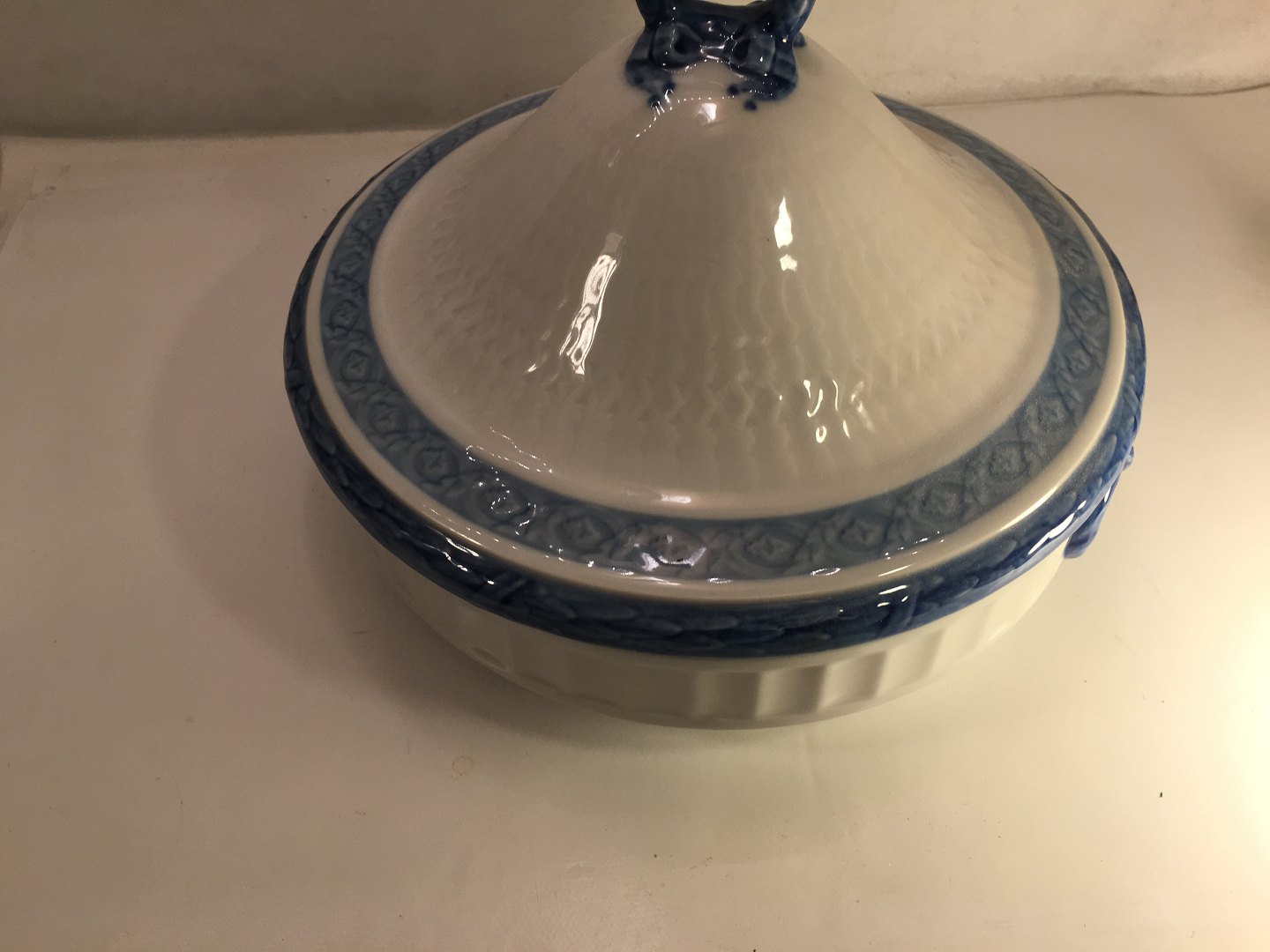 Skål: Højde 15,5 cm. med låg. dia 21,5 cm.