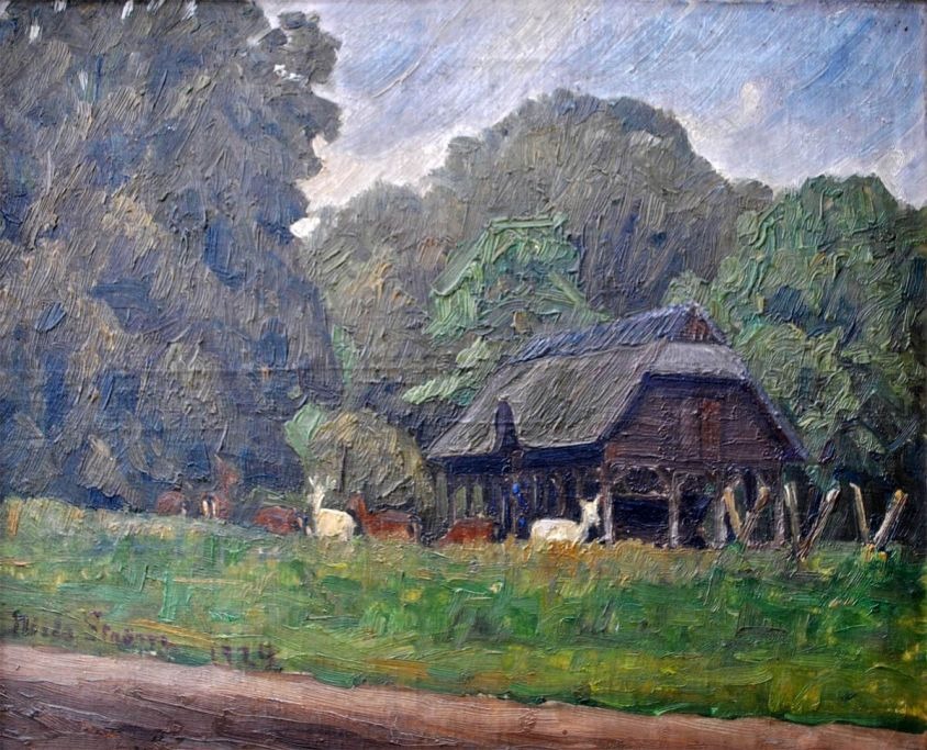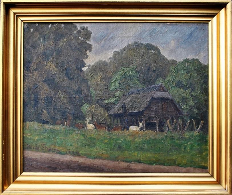 Strøm, Niels (20. årh)  Parti fra Dyrehaven. Signeret. Olie på lærred. 39 x 49 cm.