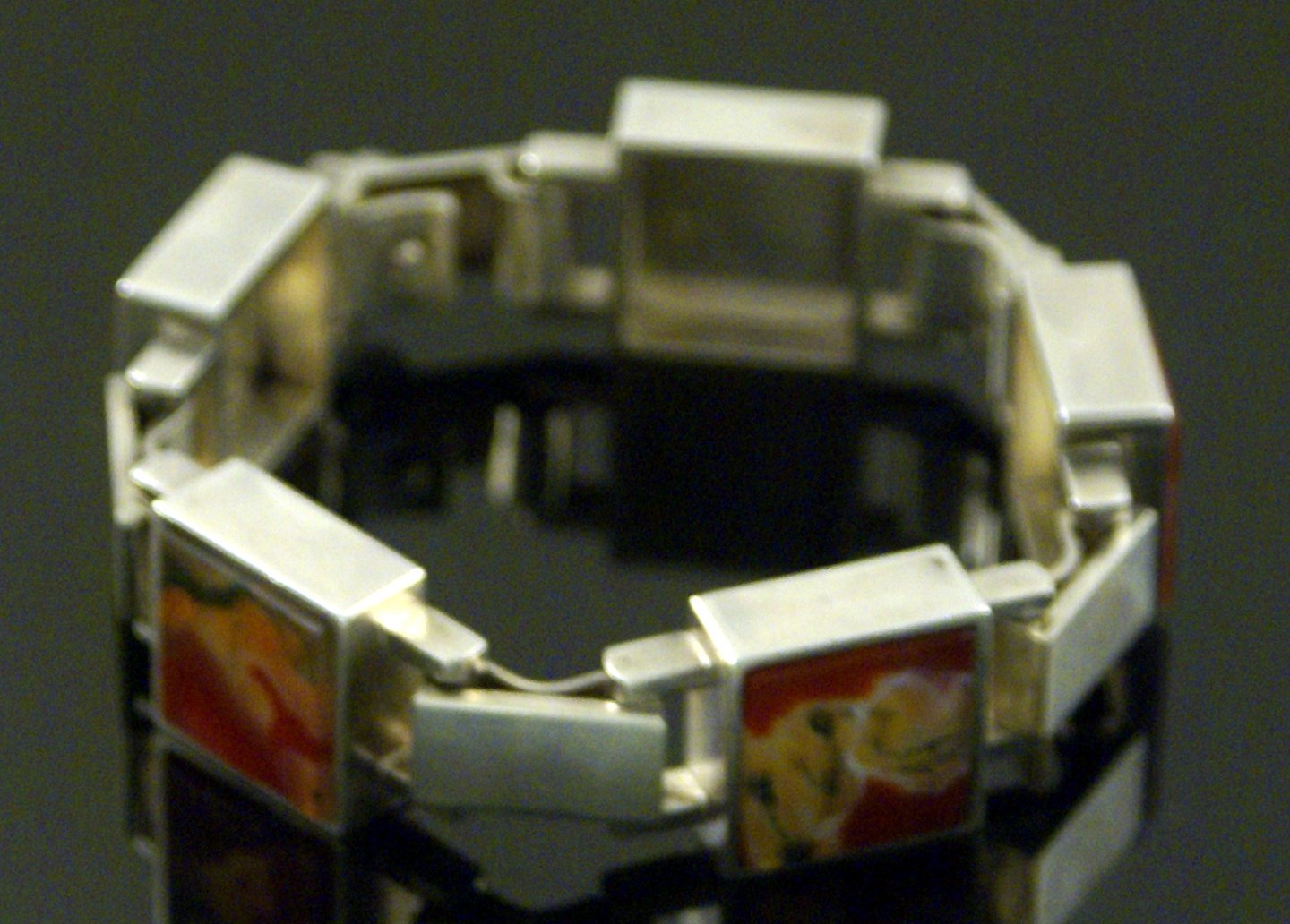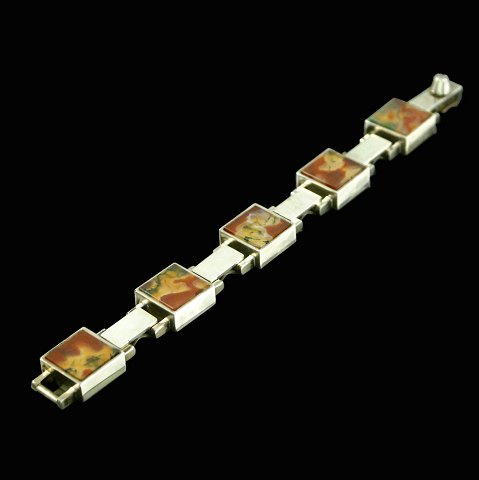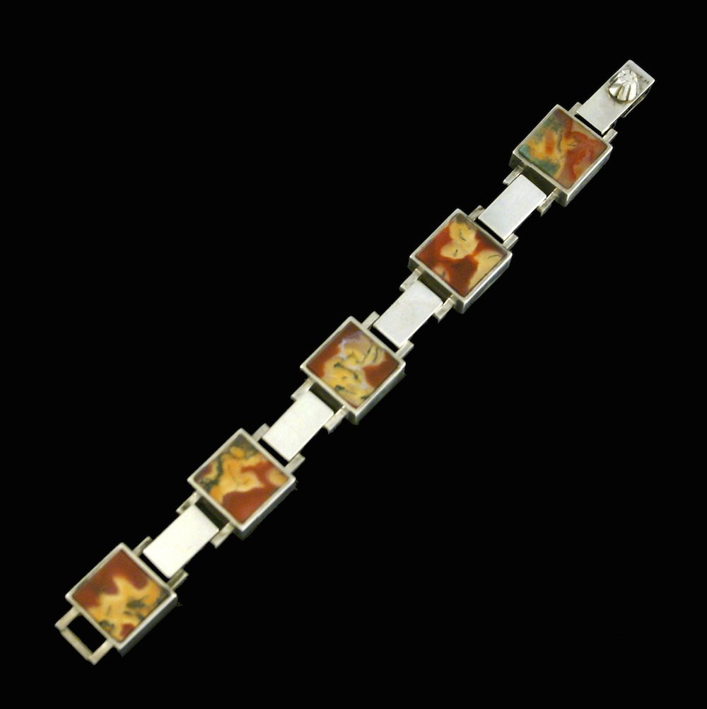 Sven Haugaard. Armbånd i sterling sølv med mosagat. 1960erne