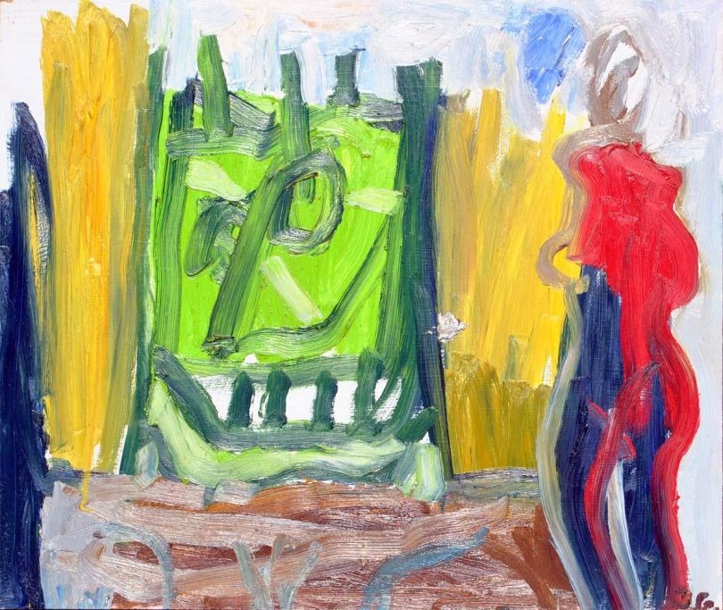 Gislason, Jon (1955 - ) Danmark: Komposition. Olie på masonit. Signeret: Monogram. 50 x 60 cm.