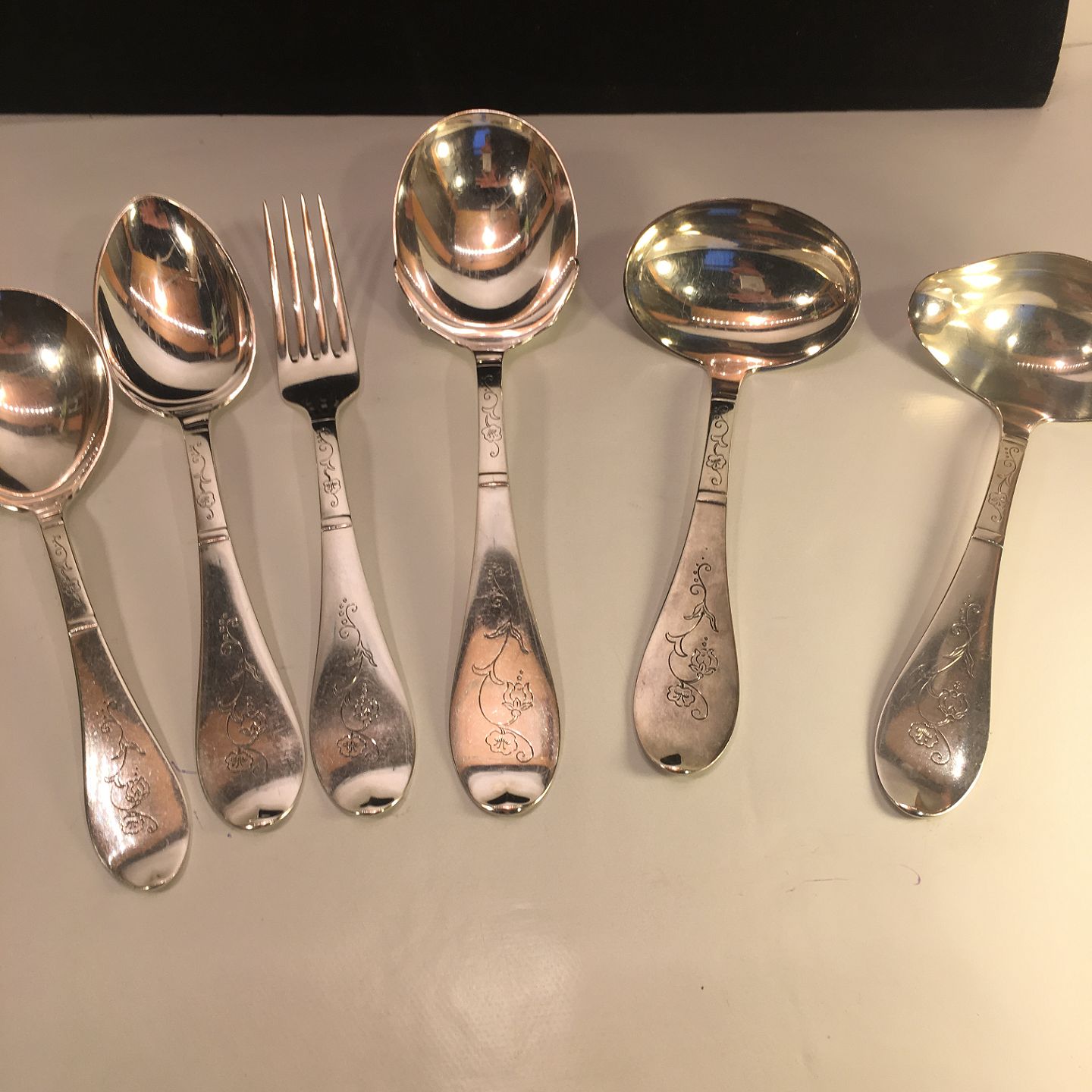 sovse ske , sovseske , kompotske , kartoffelske, middags gaffel , middags ske, kaffeske. mm.