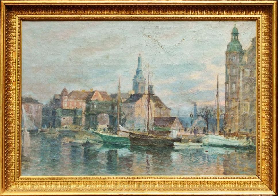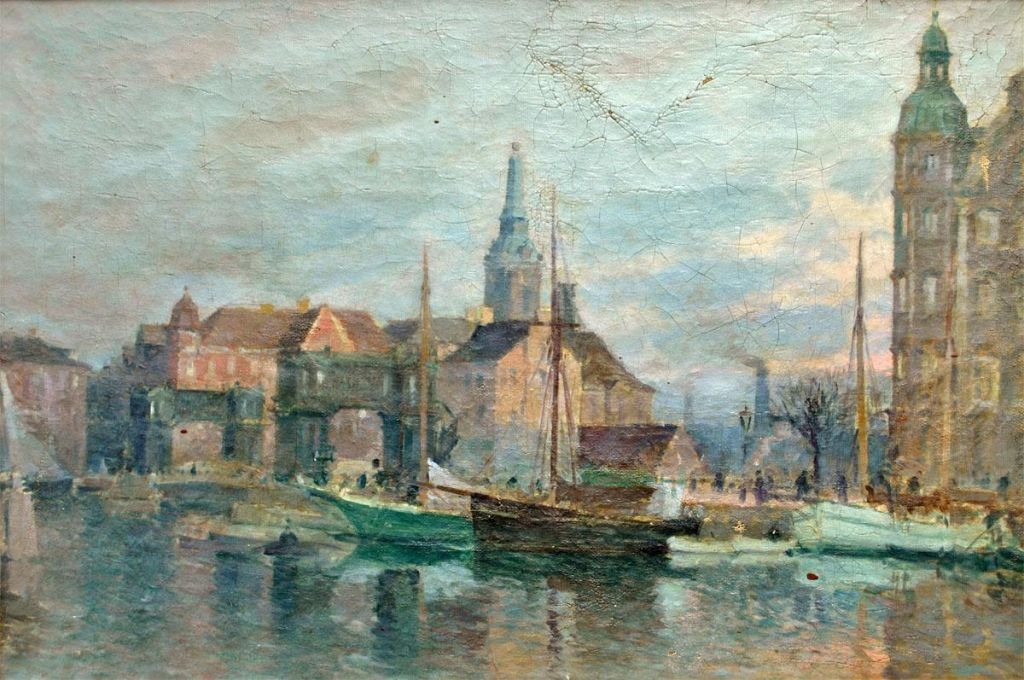 Ubekendt kunstner (19. årh.): Tietgens Hus med Christians Kirke i midten. København. Olie på lærred. 40 x 60 cm. Signeret.