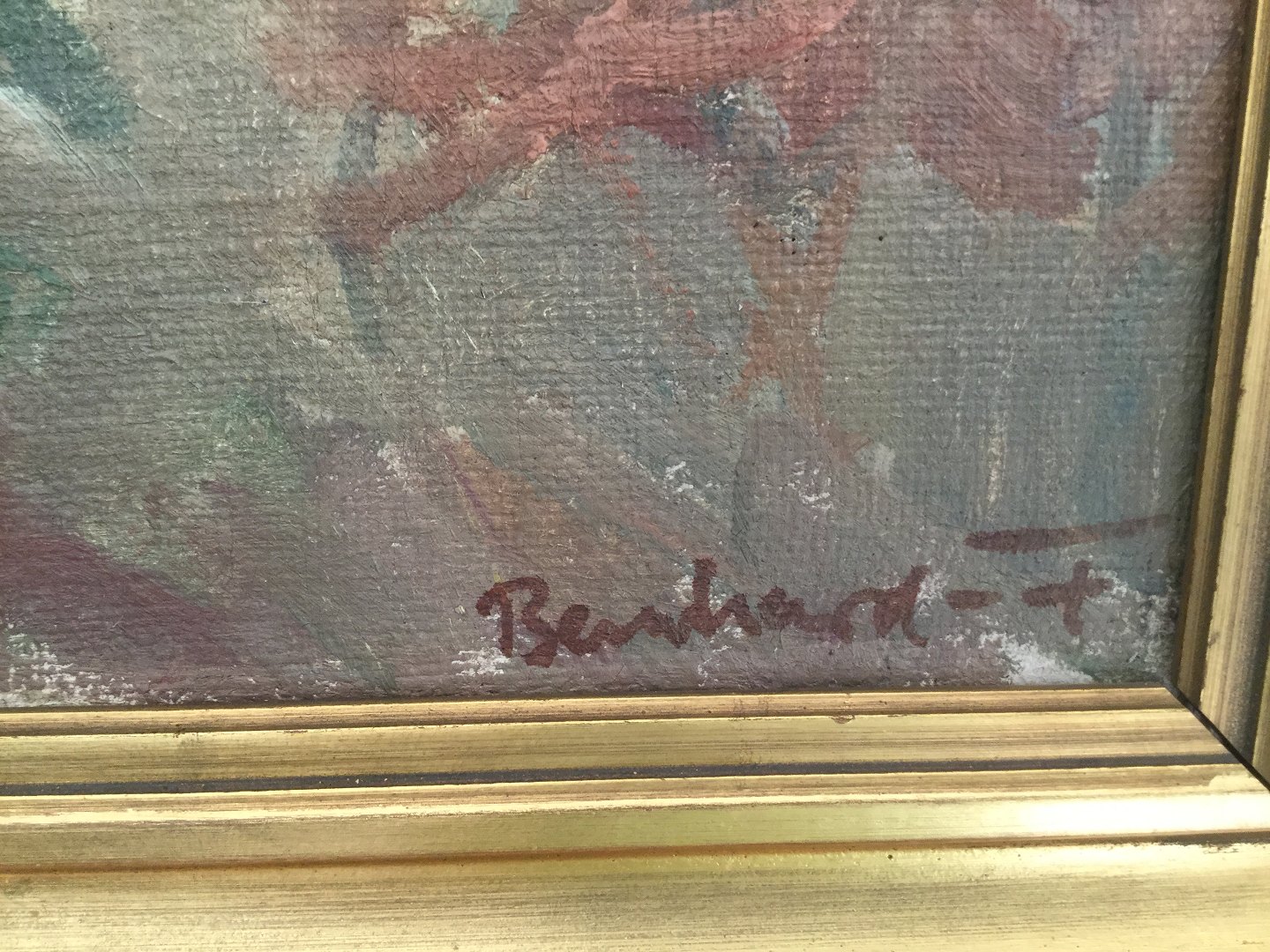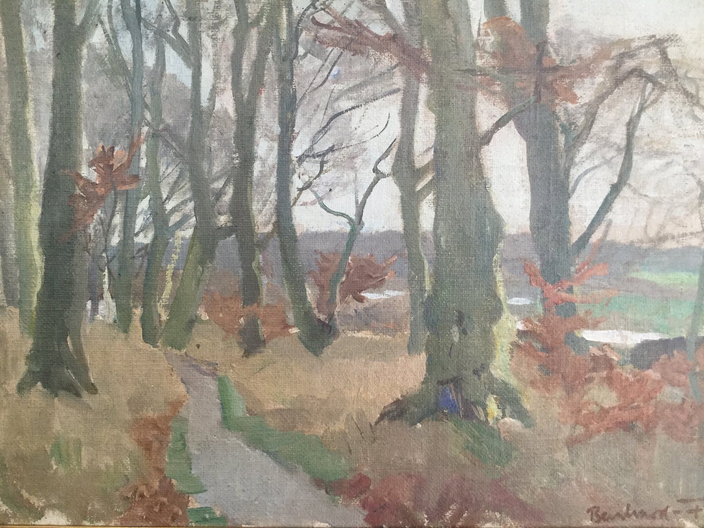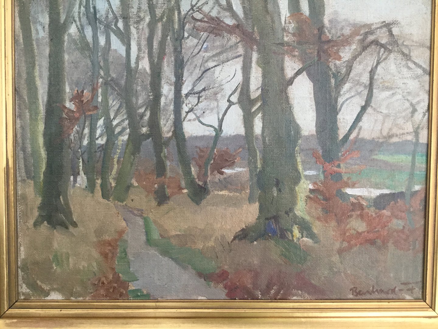Maleri af Aage Bernhard-Frederiksen - Skovparti med sø, efterår.