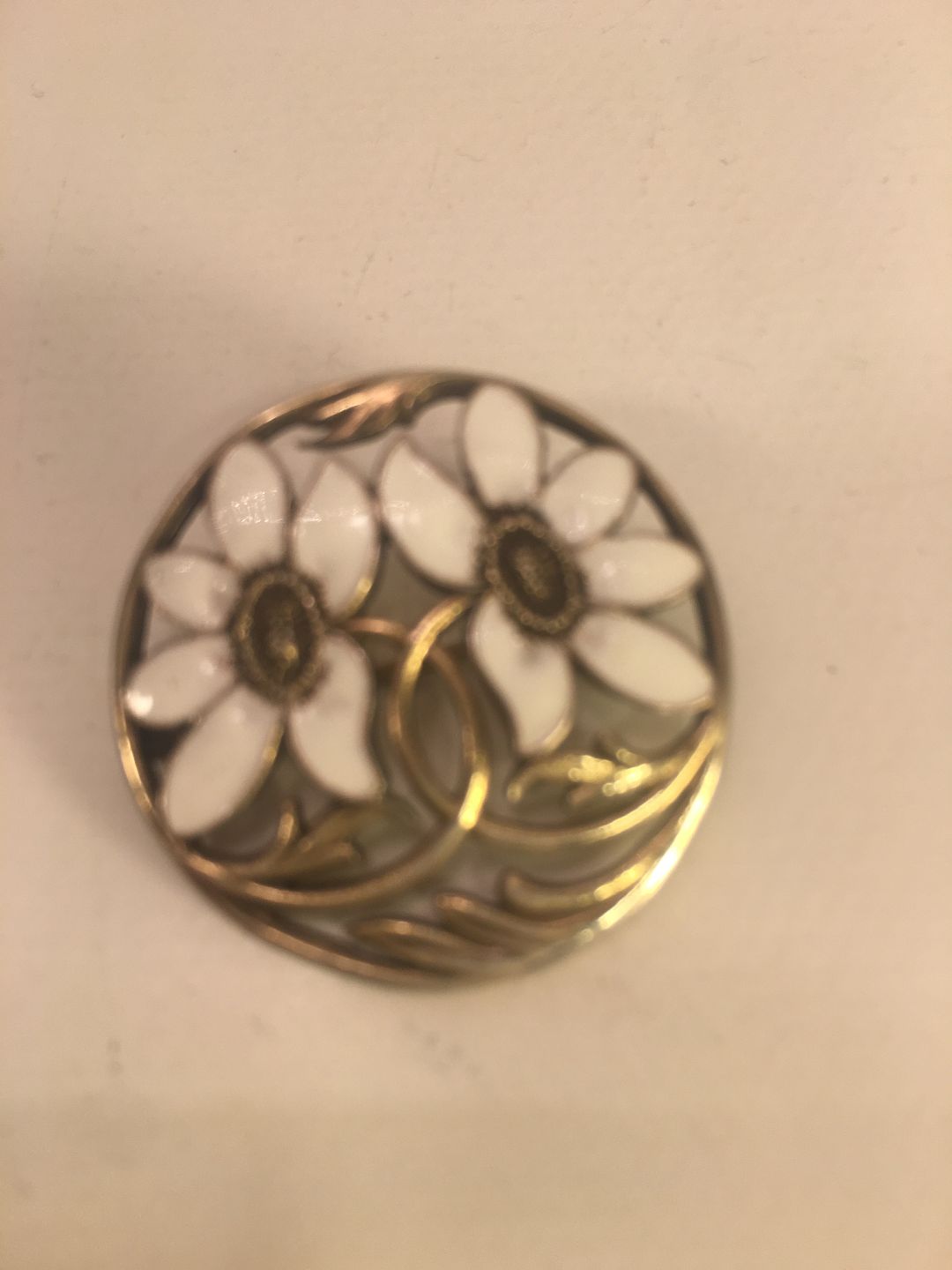 Broche med blomster med emalje.