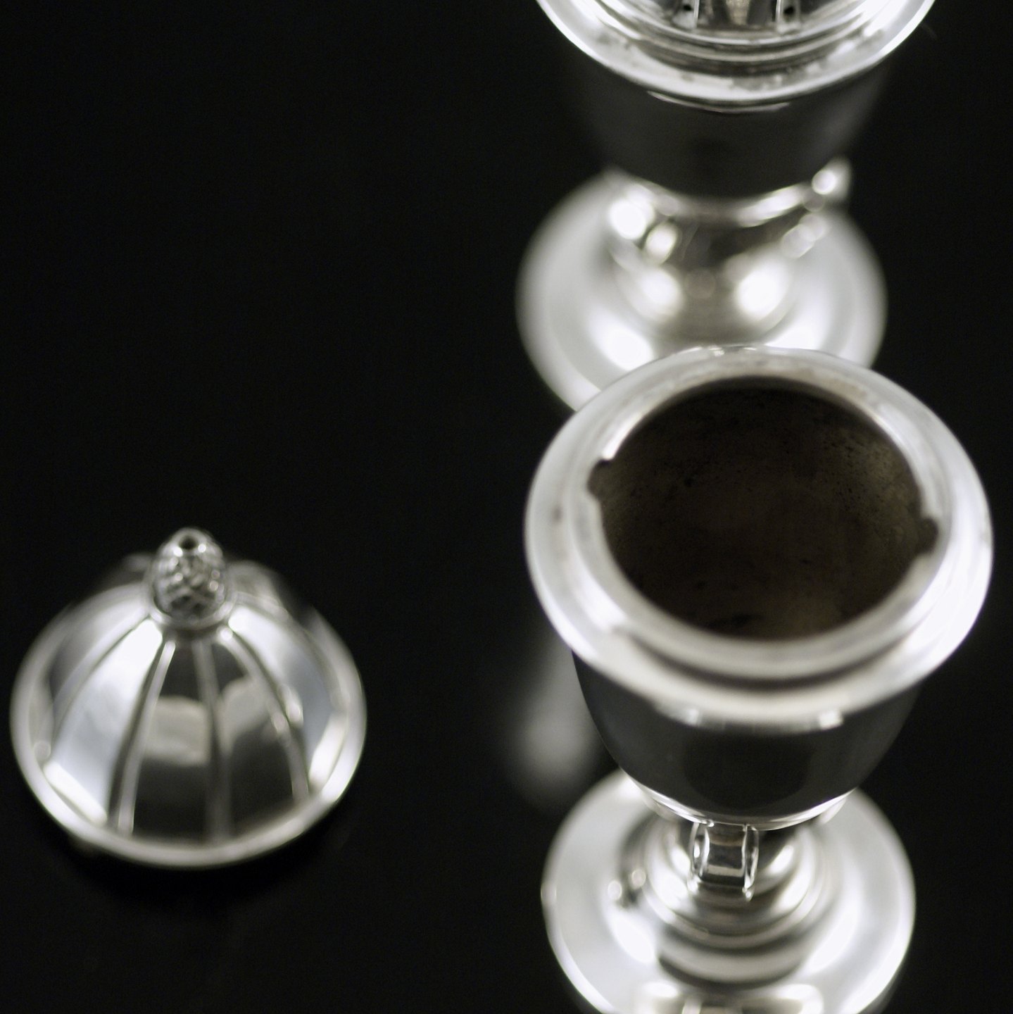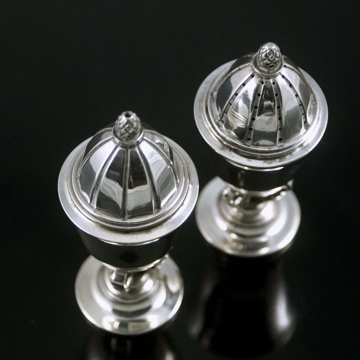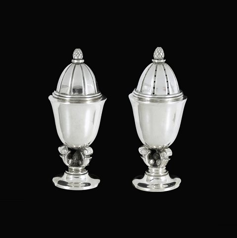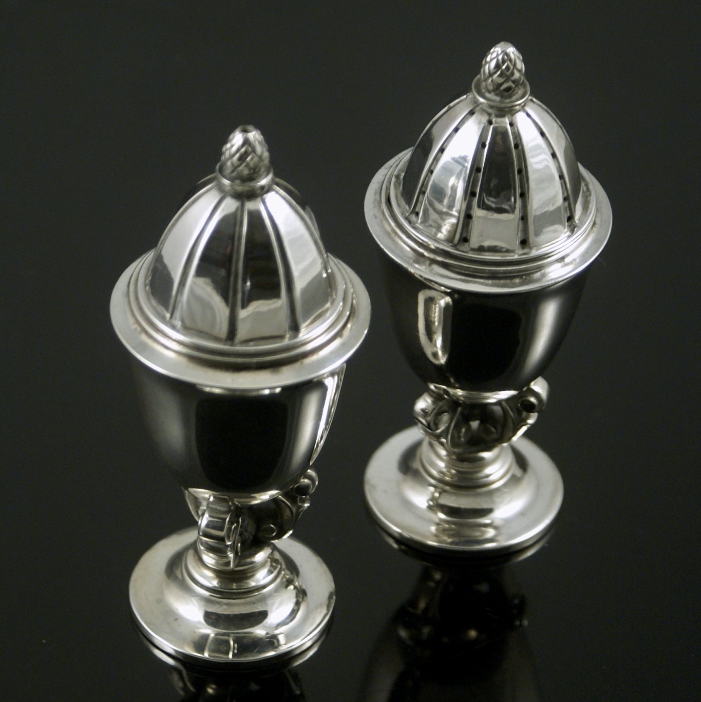 Georg Jensen. Sterling Silver Salt & Pepper Set #741- Acorn / Konge - 1933-44 Hallmarks