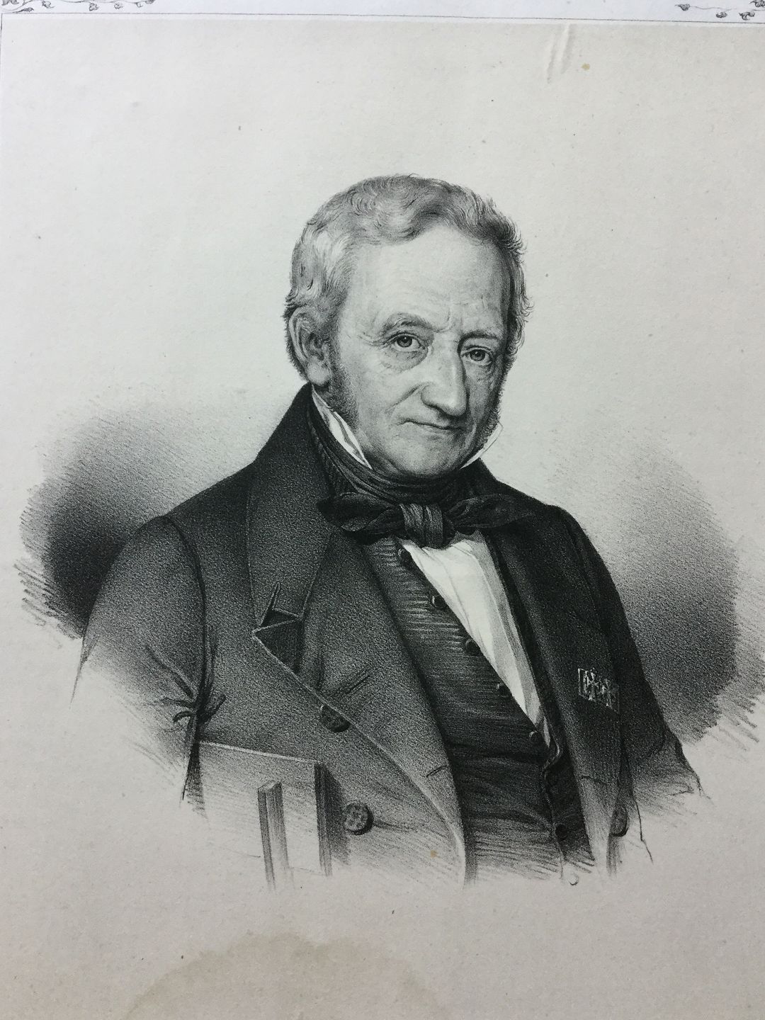 Portræt af Gehejmekonferensråd Jonas Collin - litografi af Em. Bærentzen ca. 1850.
