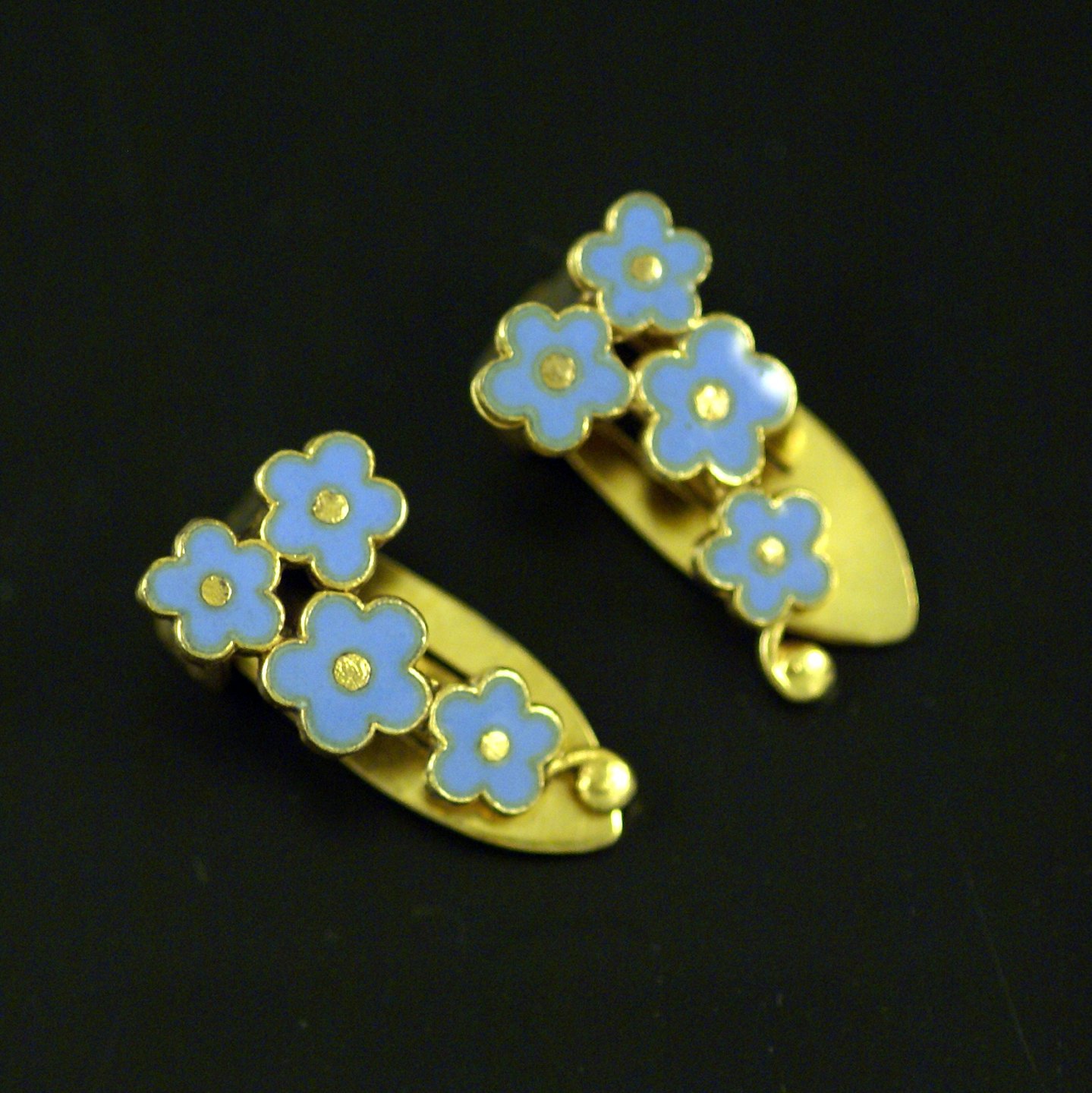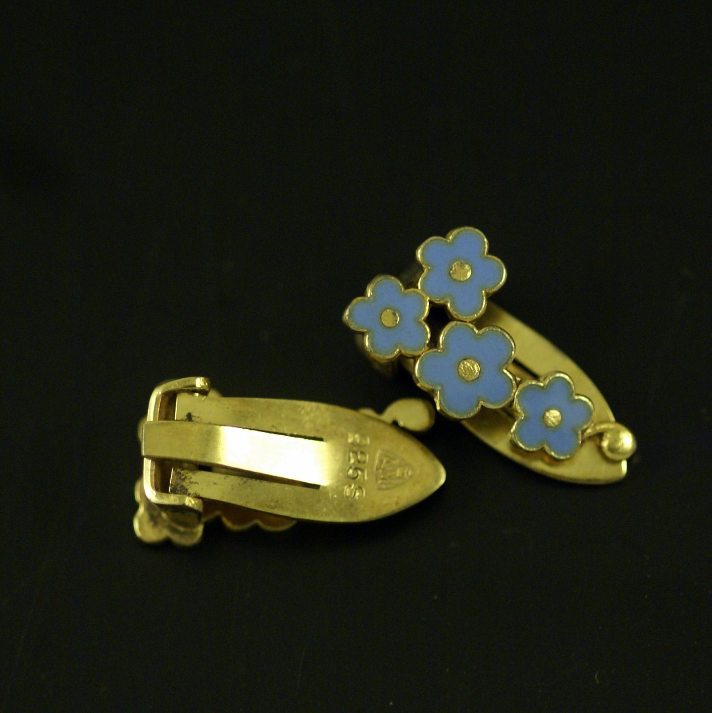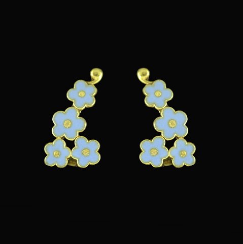 Erik Herløw for A. Michelsen. Øreklips i forgyldt sterlingsølv med emalje ' forglem-mig-ej'