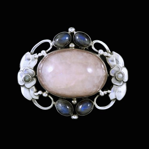 Georg Jensen Broche i 826S Sølv #78 med Rosa Kvarts, Labradorit og Perler - 1904-1908 stempler.