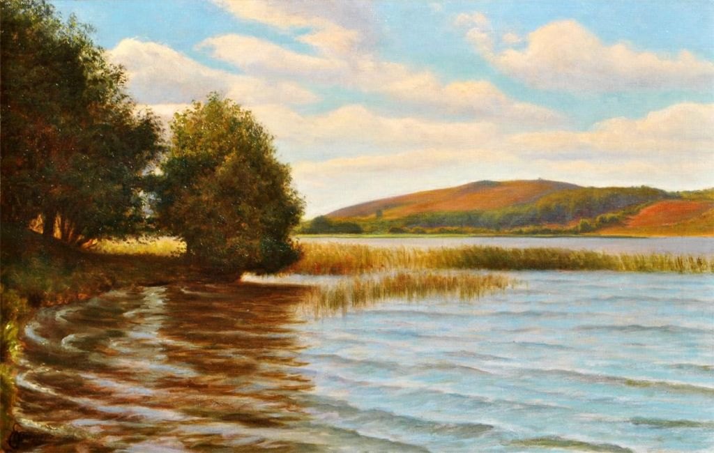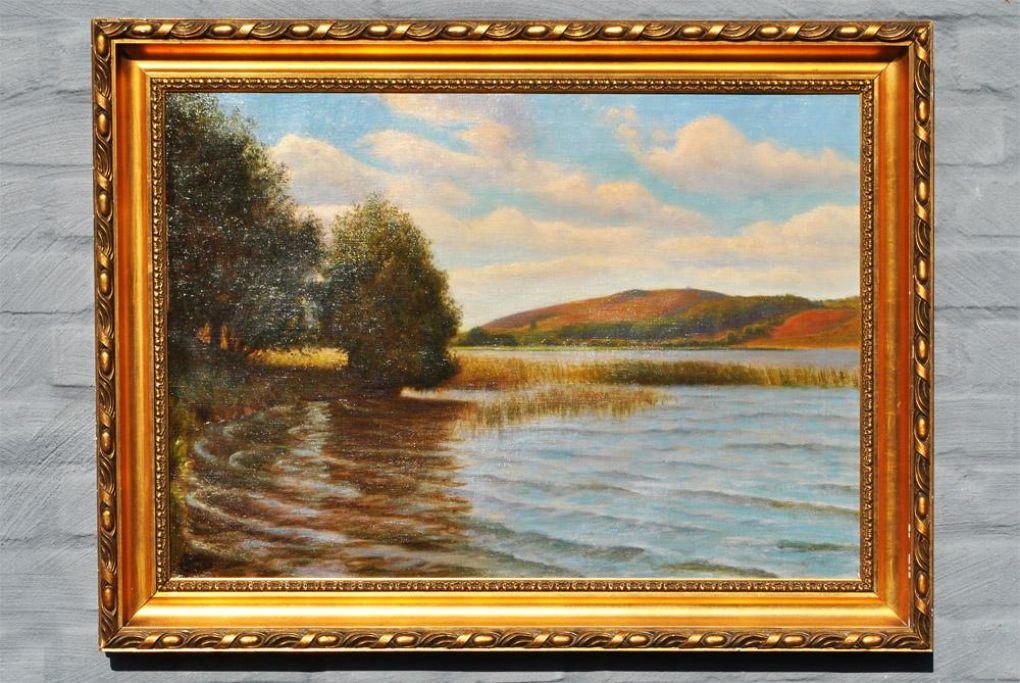 Wennerwald, Emil (1859 - 1934) Danmark. Scene fra Himmelbjergsøerne. Olie på lærred. Sign.: E. wennerwald. 46 x 66 cm.