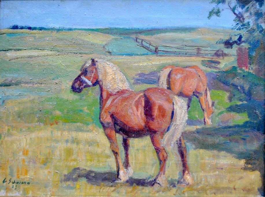 Schwenn, Carl (1888 - 1973): Heste på en mark