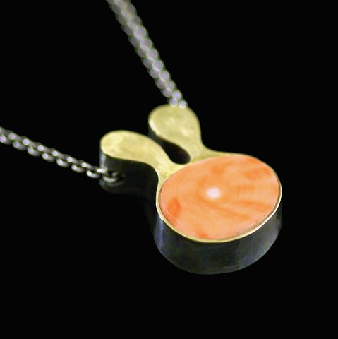 Ole Waldemar Jacobsen. Vedhæng i sterling sølv med 18k guld koral.
