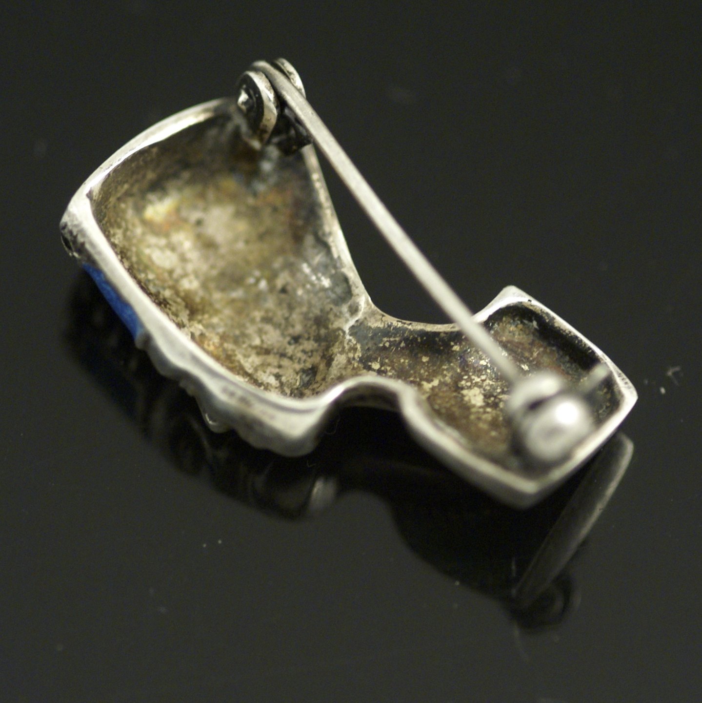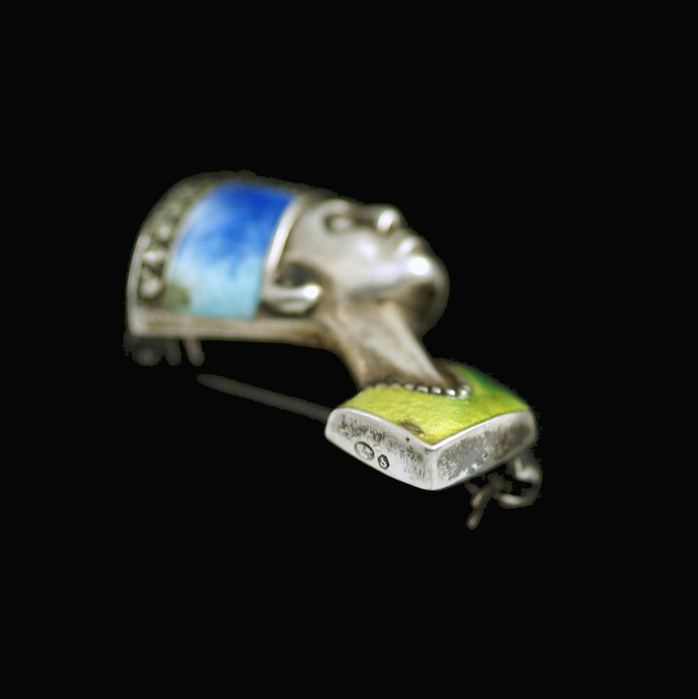 Vintage Sølvbroche med emalje og maracasit.