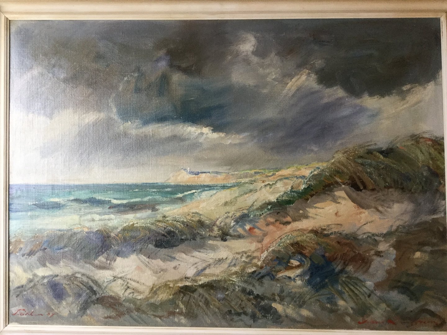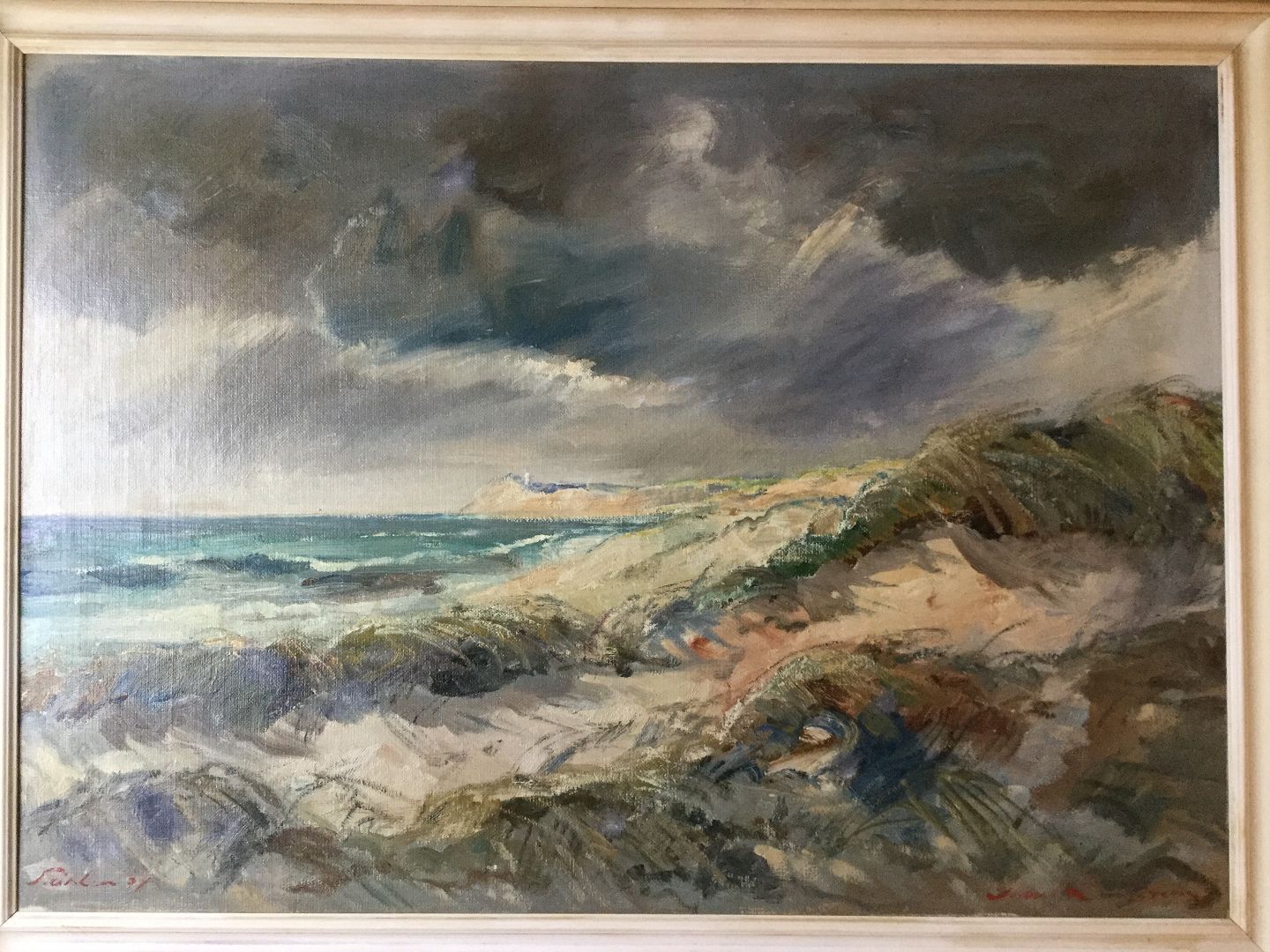 Maleri - Aksel Lundgreen - Parti fra stranden ved Løkken 1954.