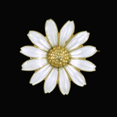 Jemax Copenhagen. Marguerit Broche i forgyldt Sterling Sølv med hvid emalje