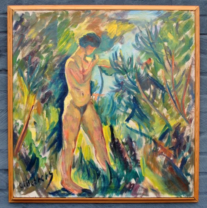Behrens, C. F. (1902 - ?) Danmark: En kvinde i en skov.