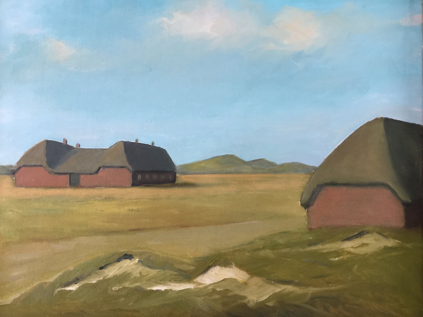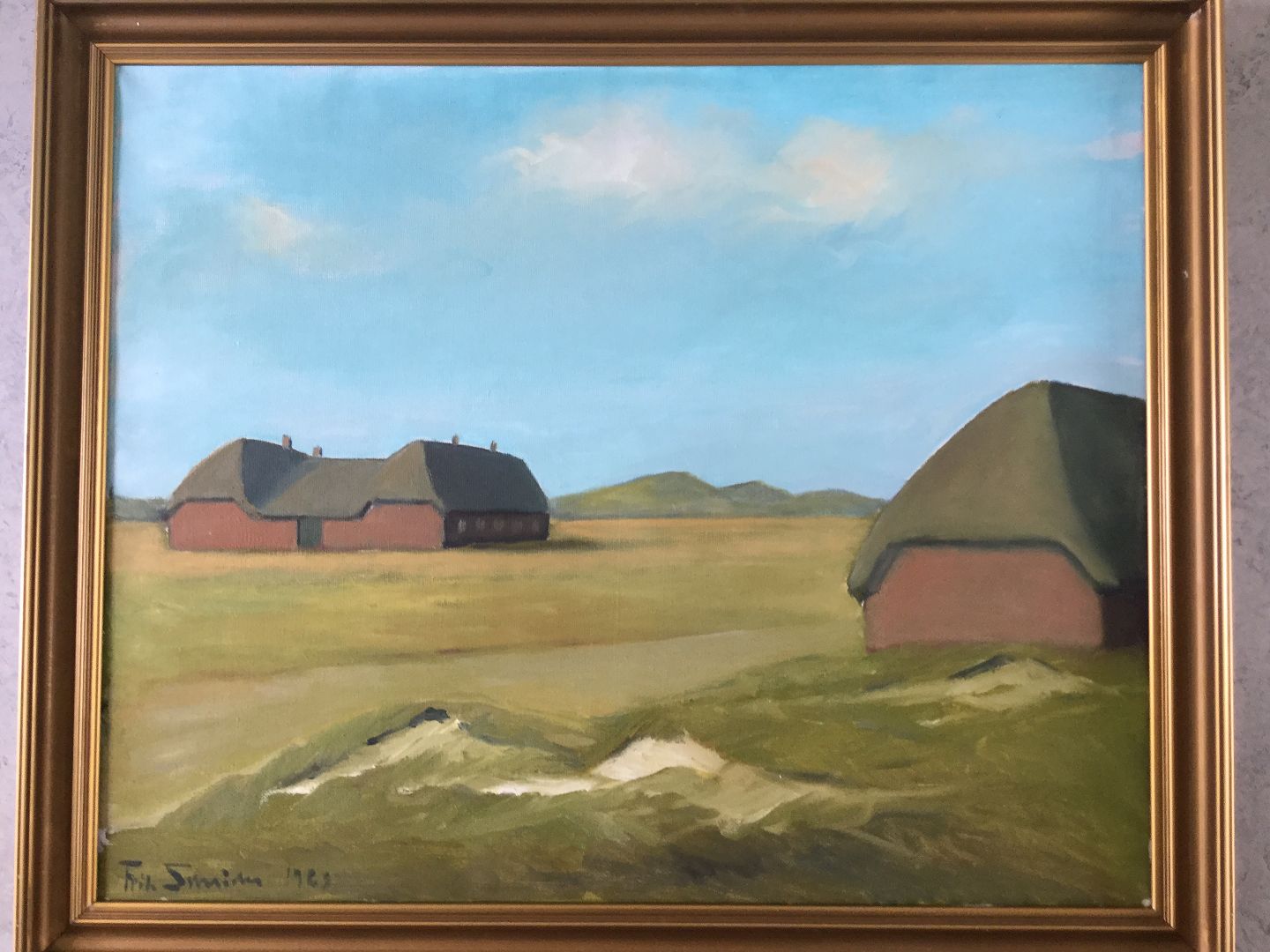 Maleri af Fritz Schrøder - Vestjysk landskab med gårde 1963.