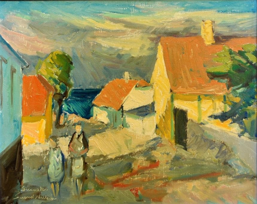 Nielsen, Svend (1908 - 1993) Danmark: Scene fra Svaneke, Bornholm