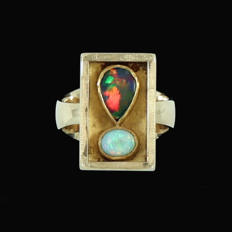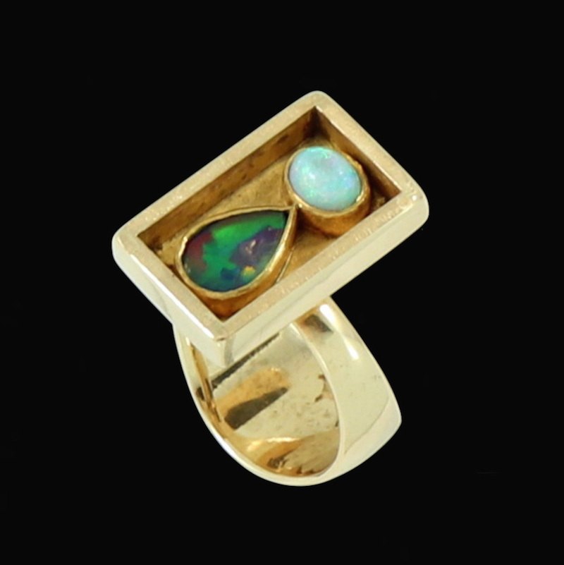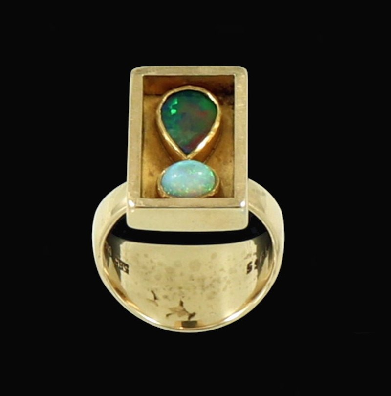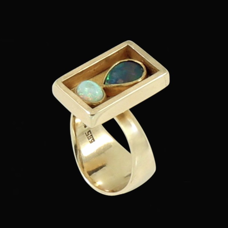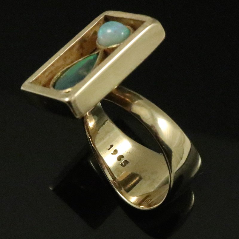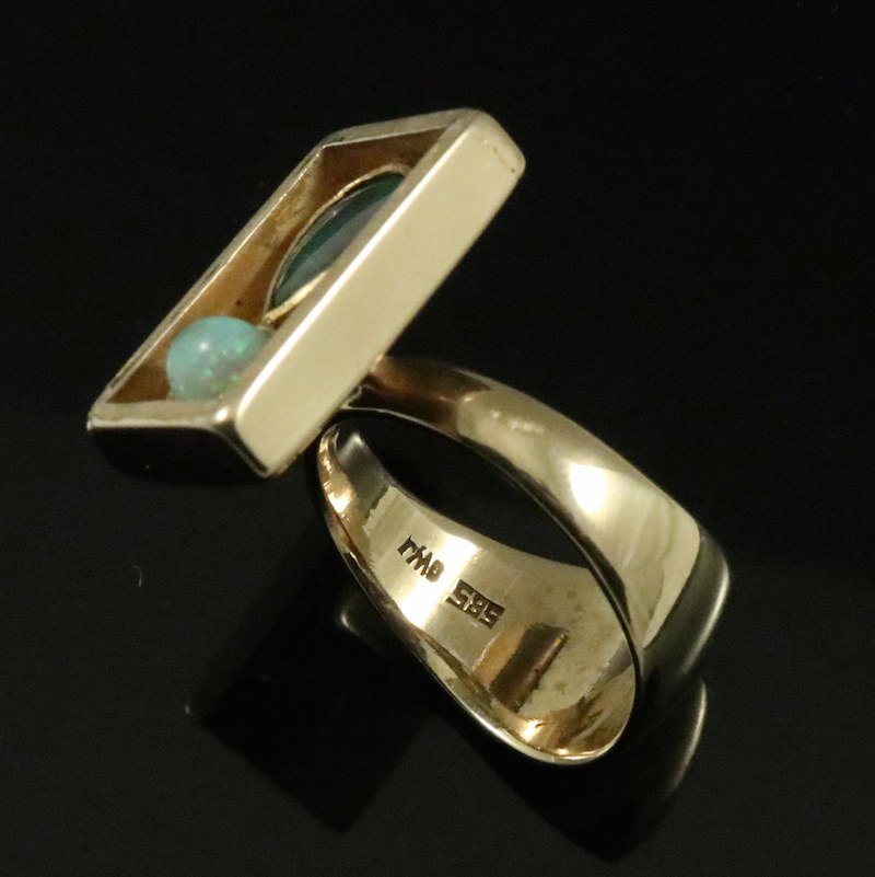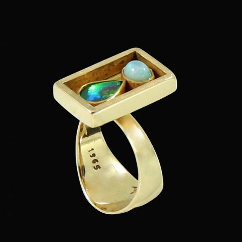 Text zugänglich auf Dänische: Ole Waldemar Jacobsen. Ring i 14k guld med opaler.