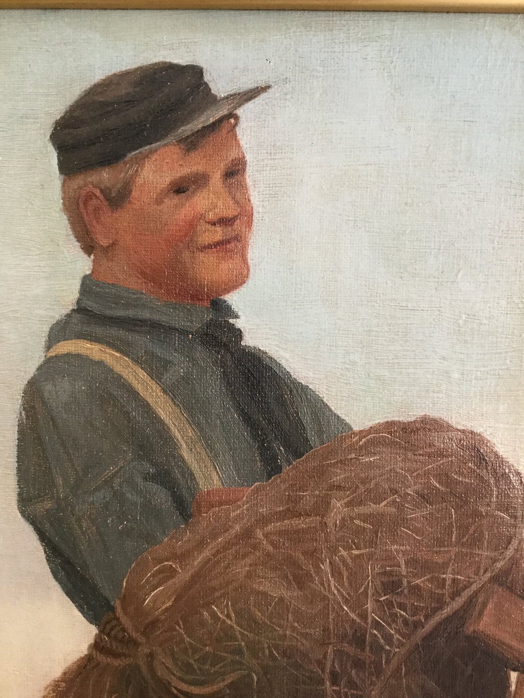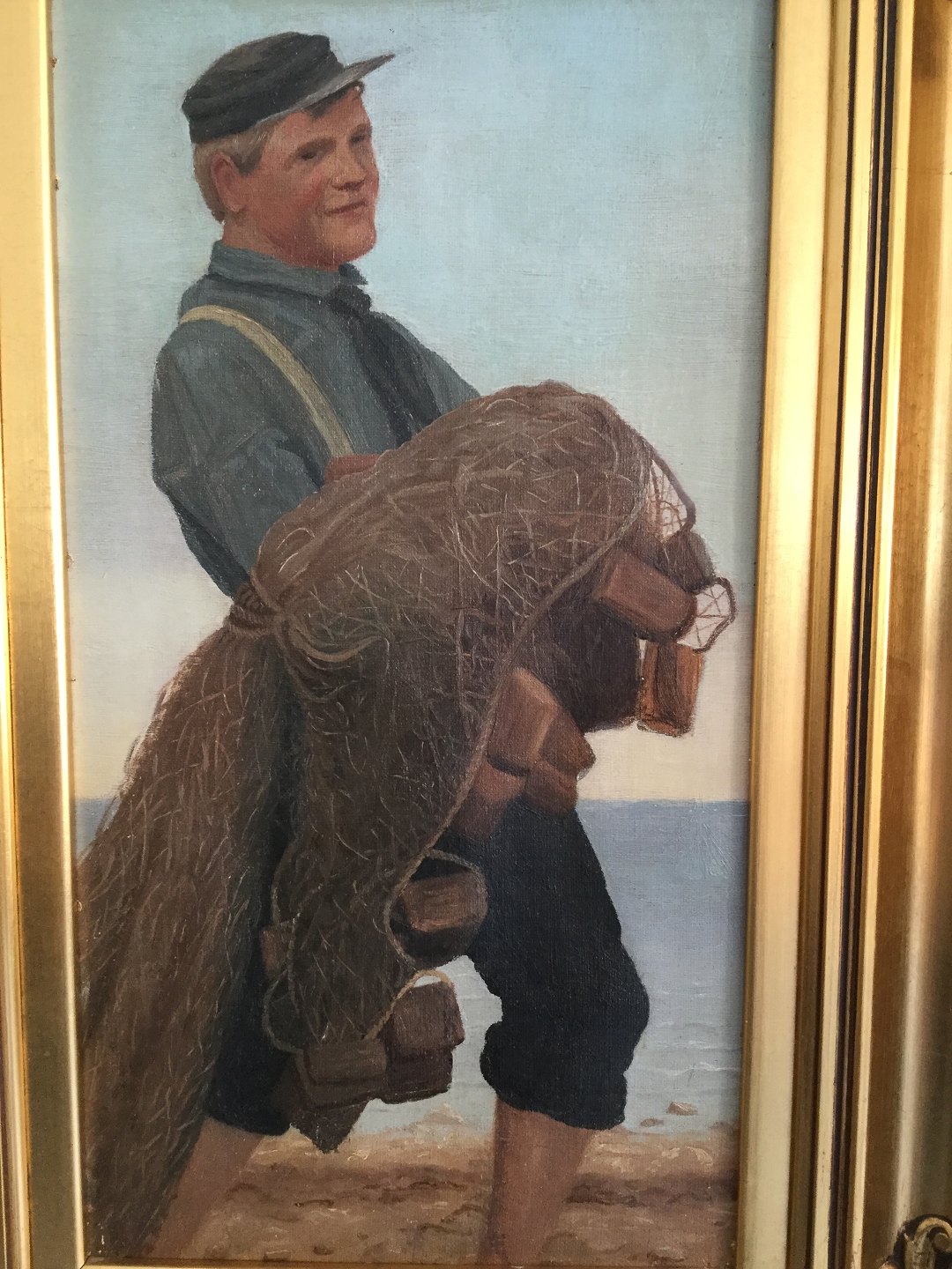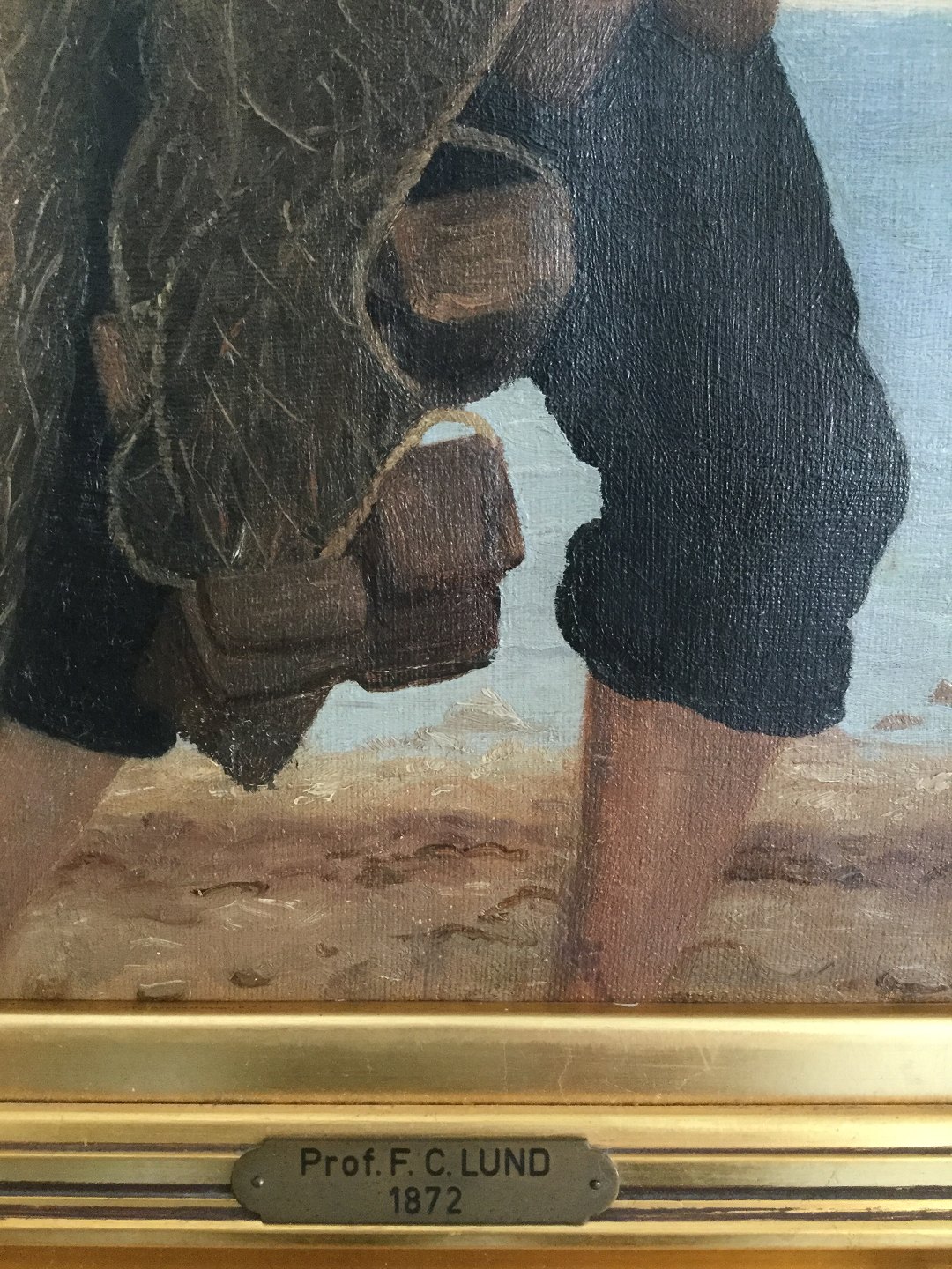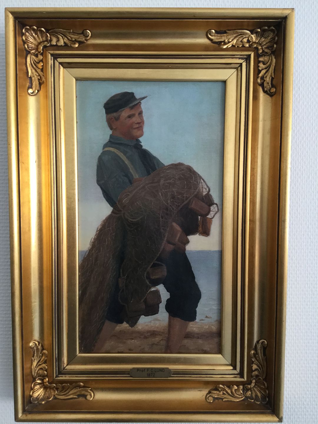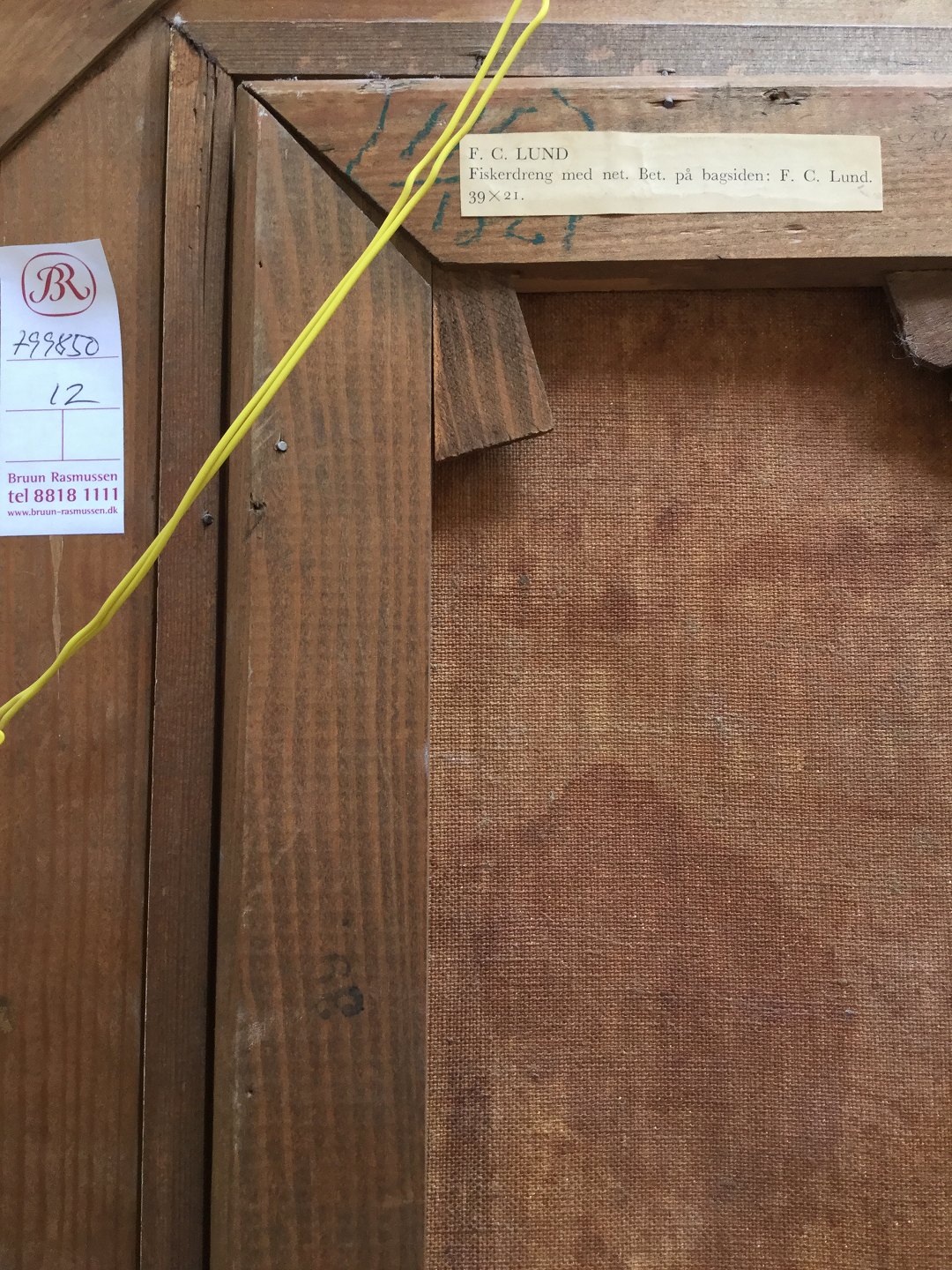 Maleri af F.C. Lund - Fiskerdreng med net 1872.