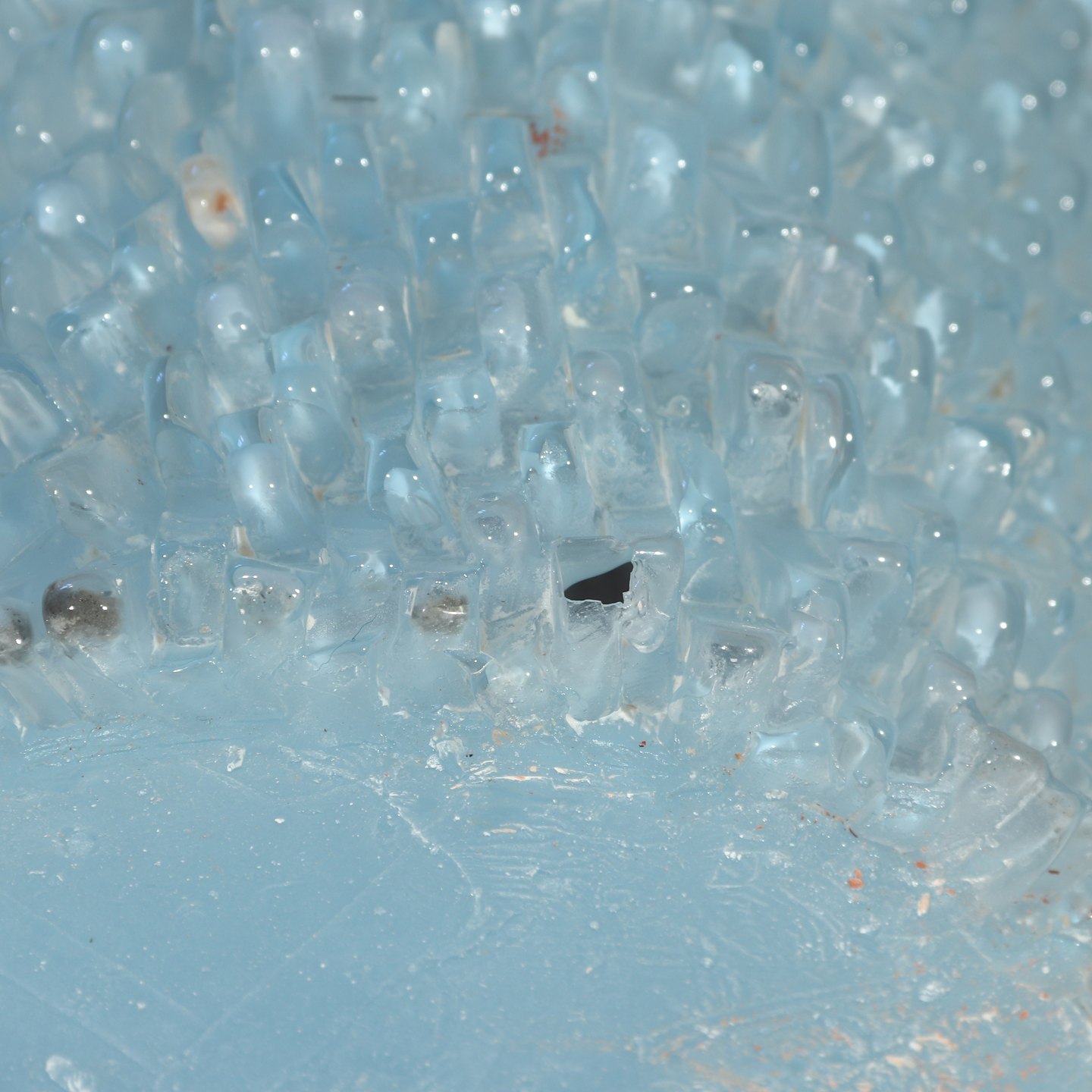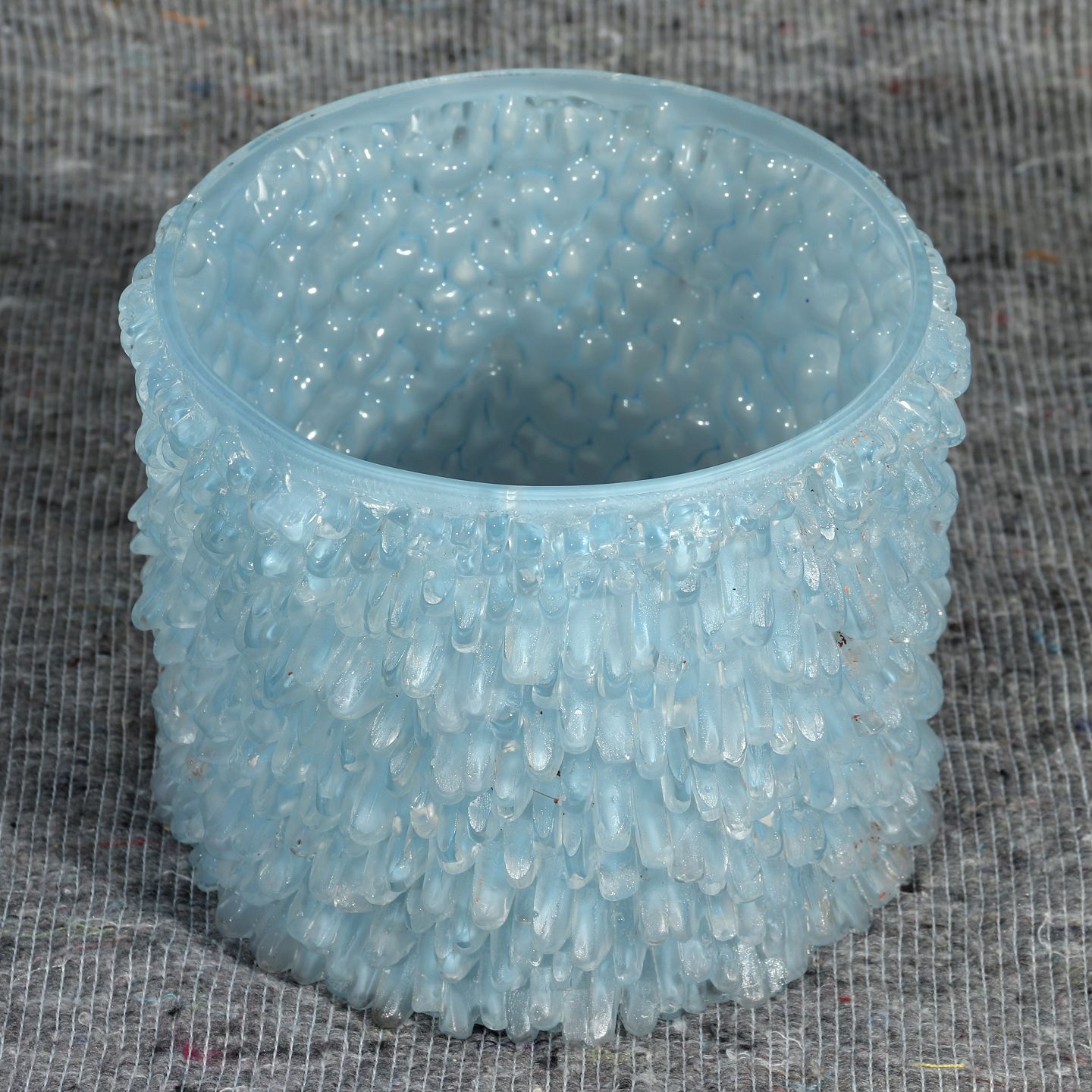 Unika urtepotteskjuler i lyseblåt glas, OBS afslag på en enkelt tap,