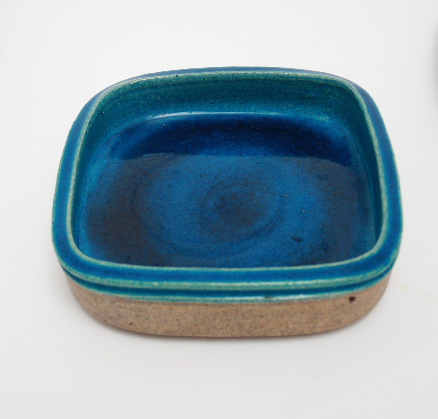 Kähler, blå saltglasur stentøj Firkantet fad designet af Nils Kähler i 1970'erne. 18,5 x 18,5 cm. Pris: 375 kr.