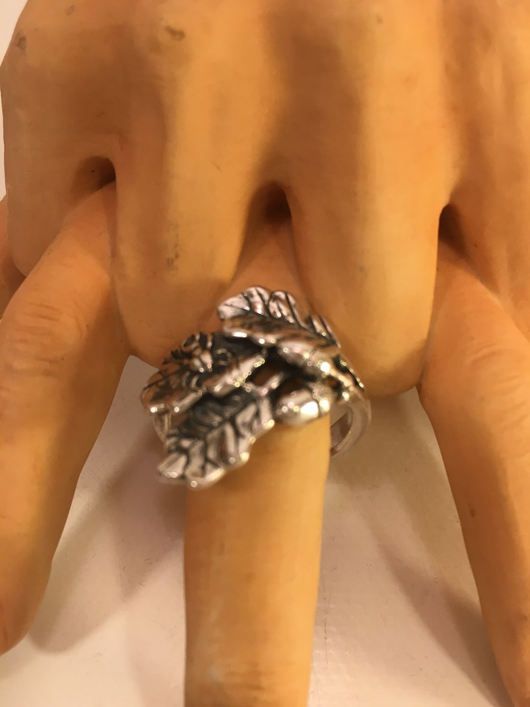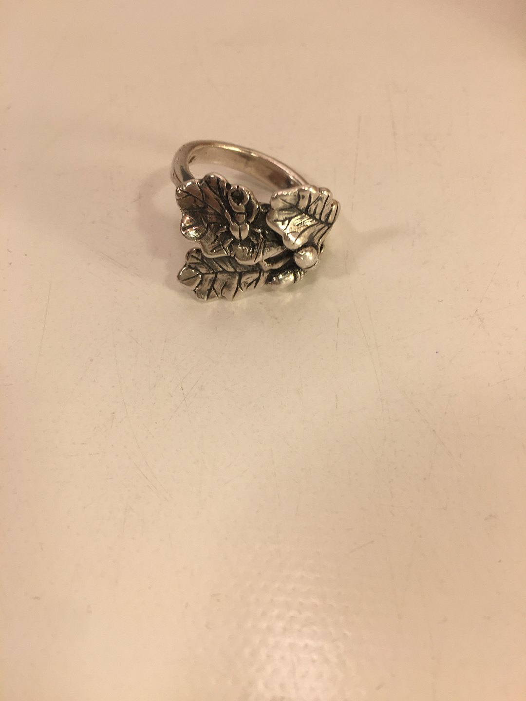 Silberring in Eichenblattform mit Eicheln.