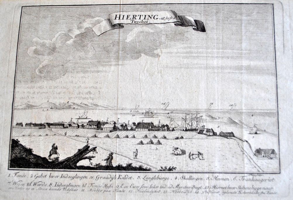 Haas, Jonas (1720 - 1775) Danmark: Prospekt over Hjerting. 1767. Signeret. 18,5 x 27 cm.