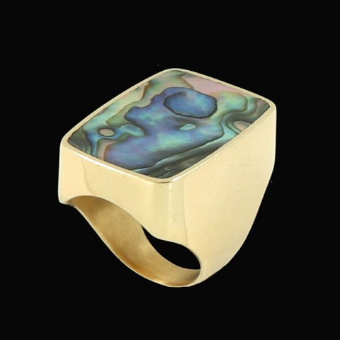 Text zugänglich auf Dänische: Palle Bisgaard - Denmark. Ring i 18k guld med Abelone #8. 1960erne